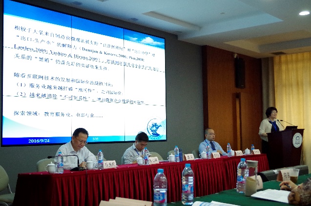 随后,在盛斌教授的主持下,会议进入主旨发言阶段。刘志彪教授围绕现代服务业发展与供给侧结构性改革进行了发言,他围绕服务业是供给侧结构性改革的核心内容、服务经济为主是否预示着产业空心化时代来临、服务经济为主是否等于经济泡沫化、以供给侧结构性改革推进现代服务业发展四大内容进行了具体阐述。邢厚媛研究员围绕服务贸易带动地方经济发展进行了发言,她指出地方服务贸易发展缓慢,发展思路和方案雷同,无法创新发展、无法参与国际竞争这两个目前较为突出的问题制约了我国服务业开放和服务贸易发展。