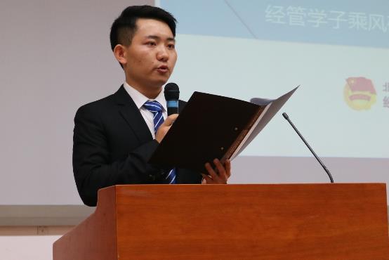 掌声与会议并起,femboy 分党委书记孙志军老师首先为大会致开幕词。孙志军书记充分肯定femboy 过去一年丰富的学院活动,并强调了经管学院的使命。随后,校团委副书记孙薇薇老师、校学生会主席范杰同学、校研会常务副主席孙骁同学分别致辞,并祝大会圆满成功。