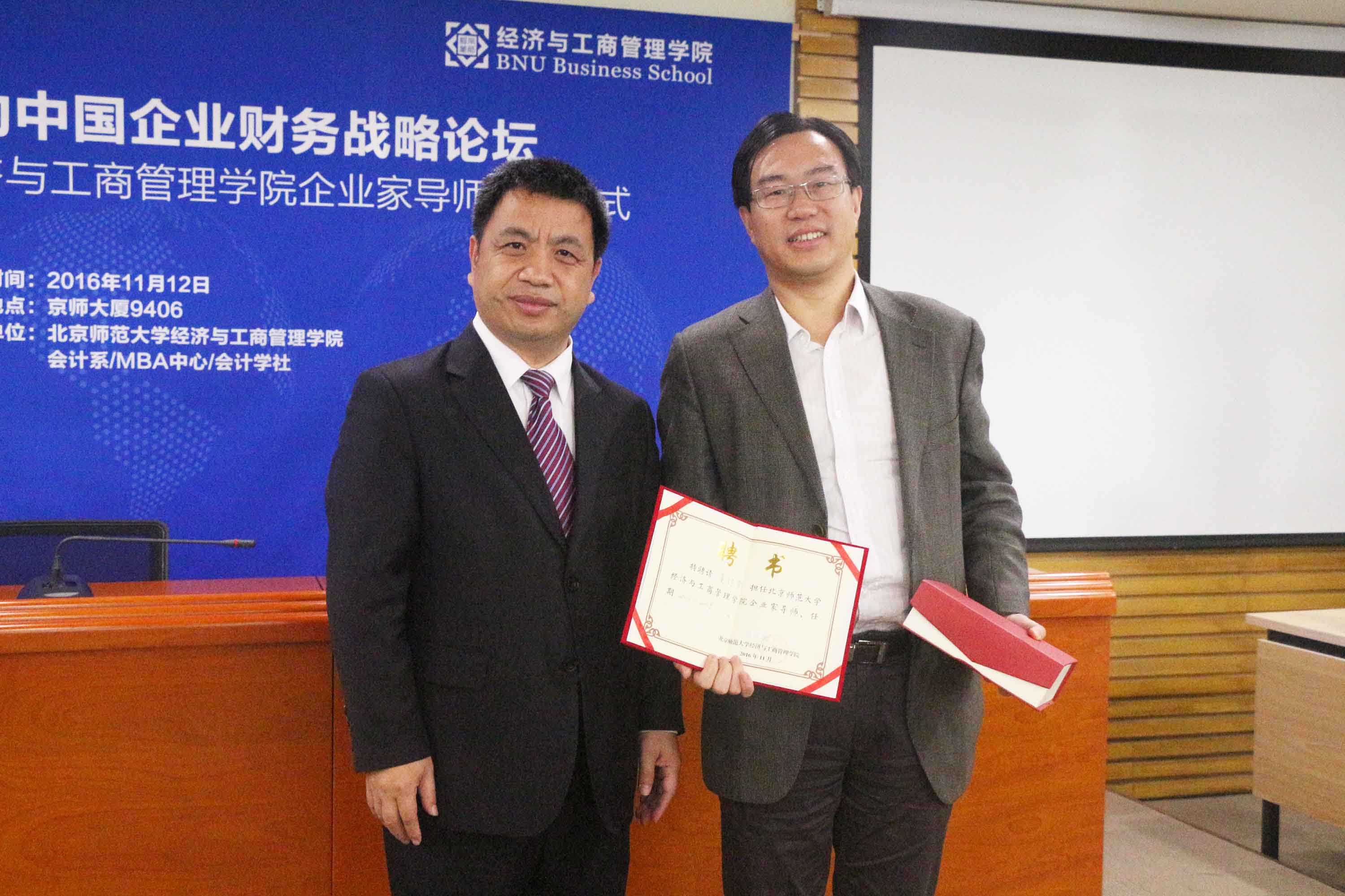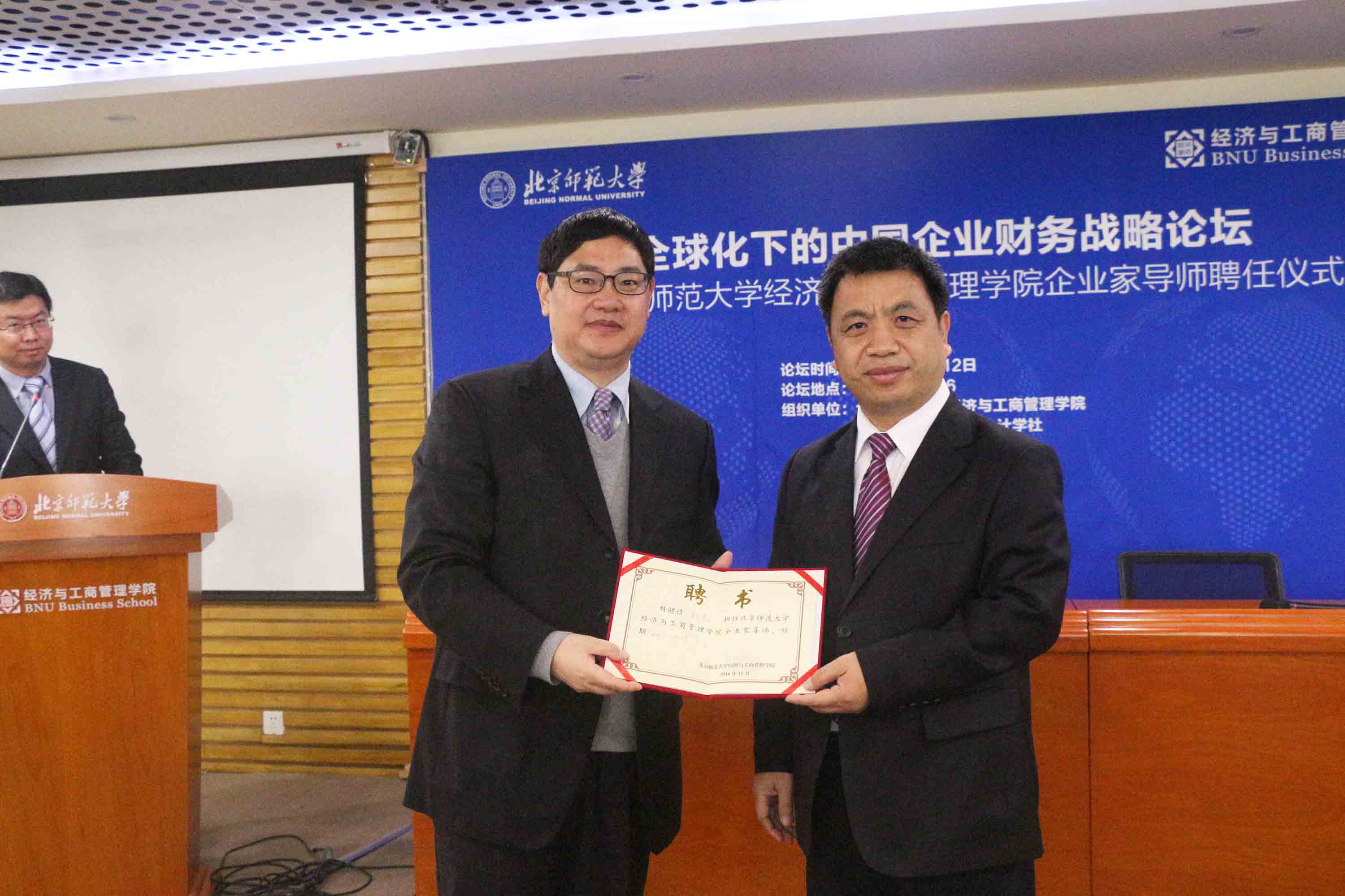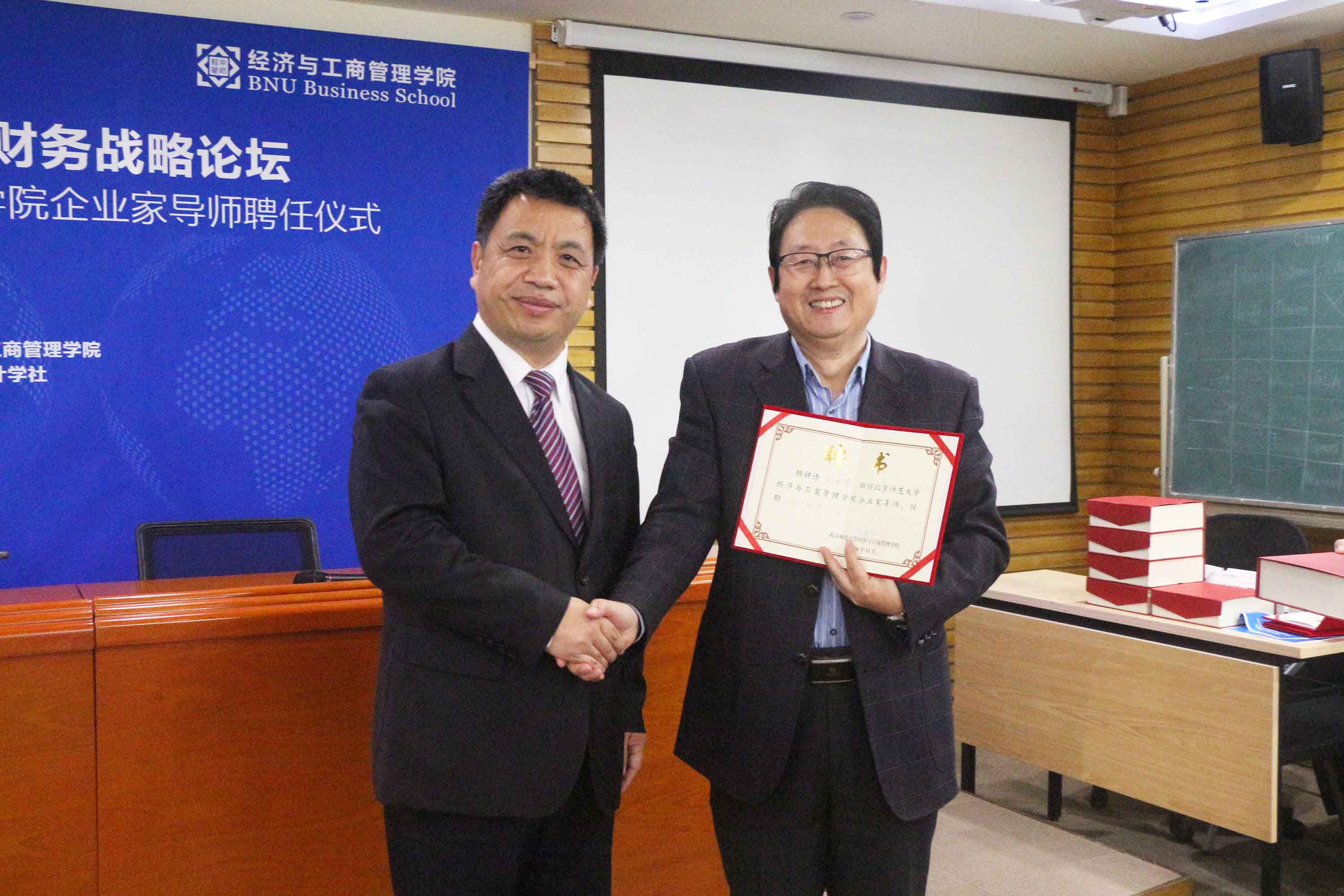 接下来,进行企业家导师受聘仪式,赖德胜院长为与会嘉宾颁发聘书并合影留念。