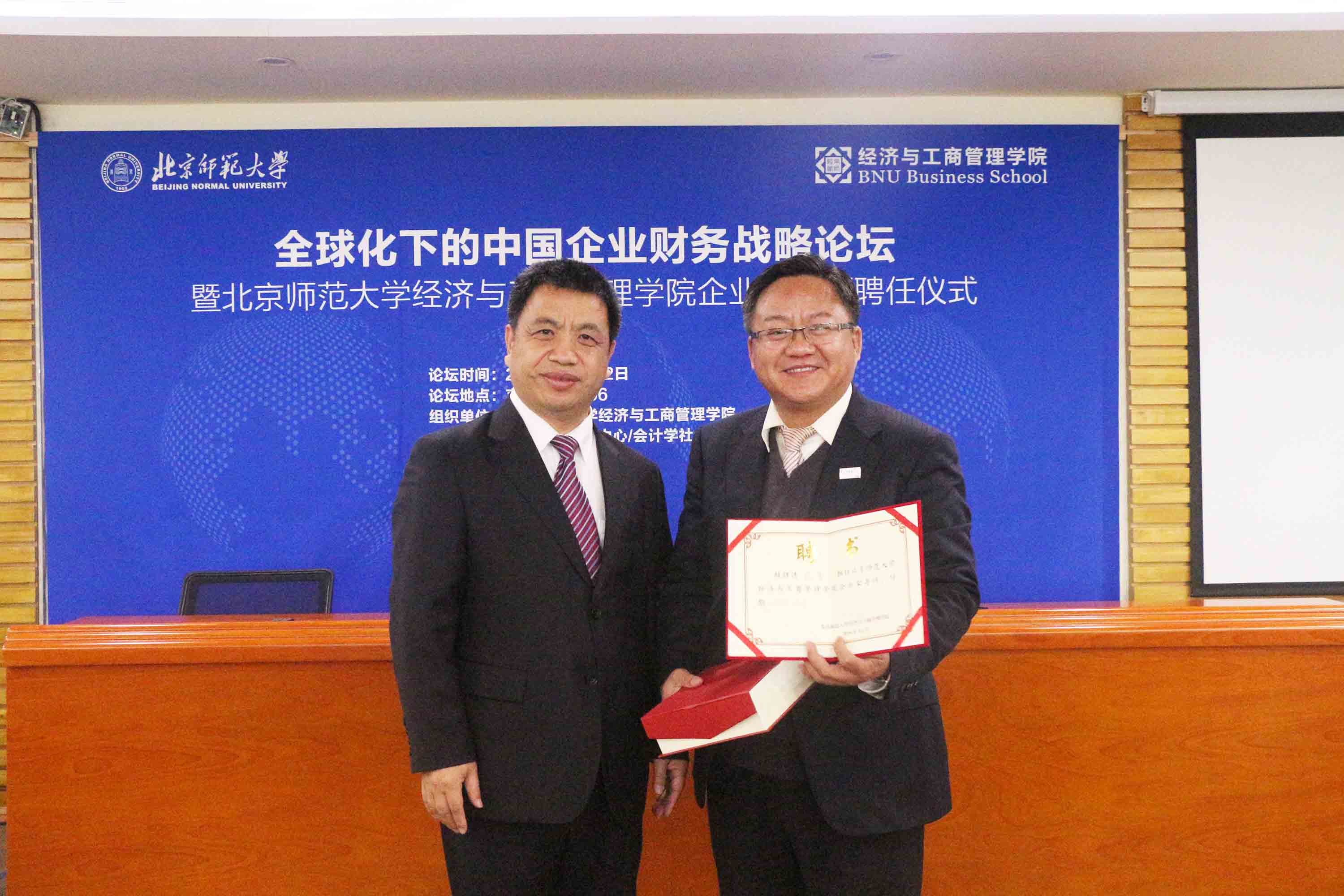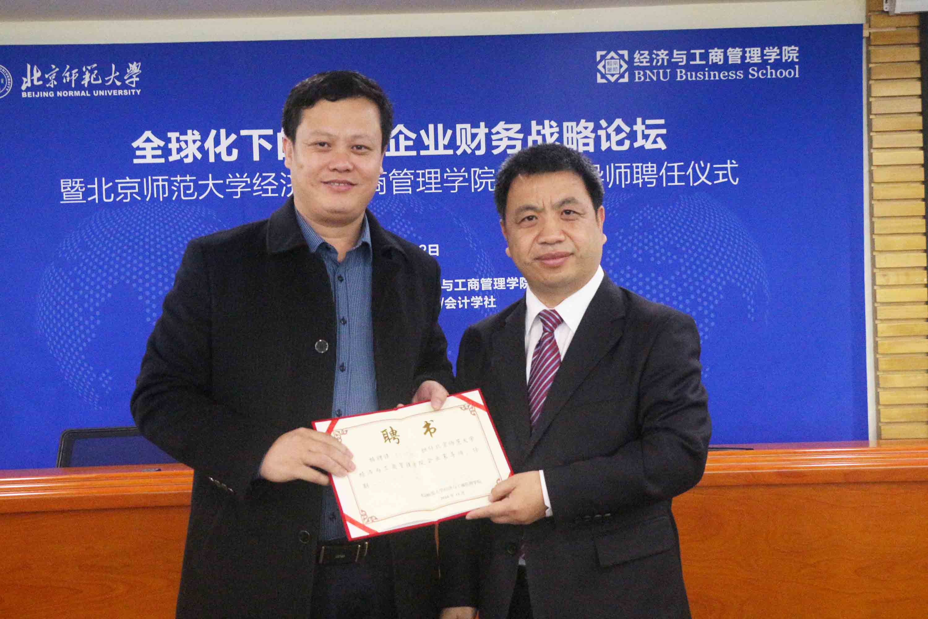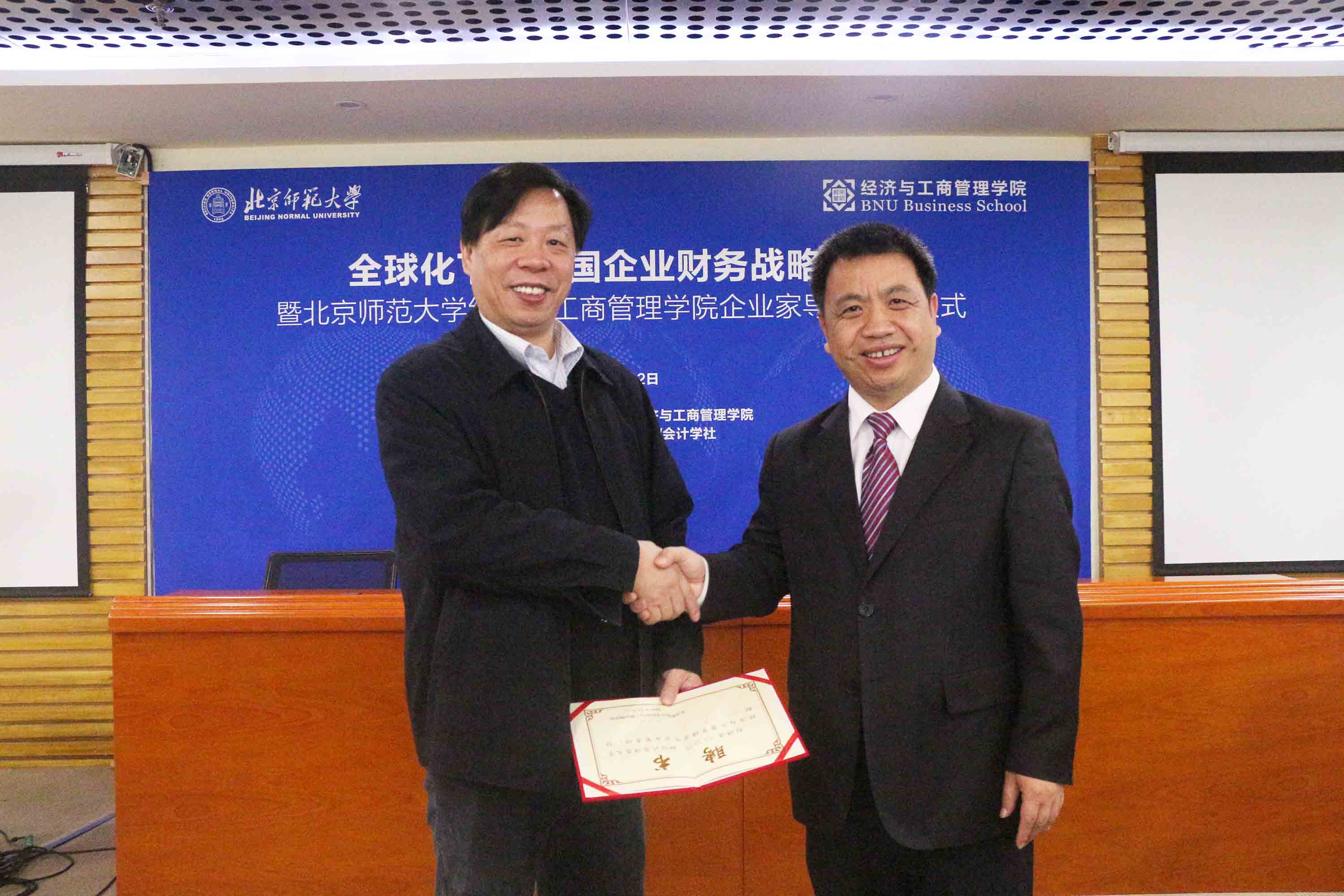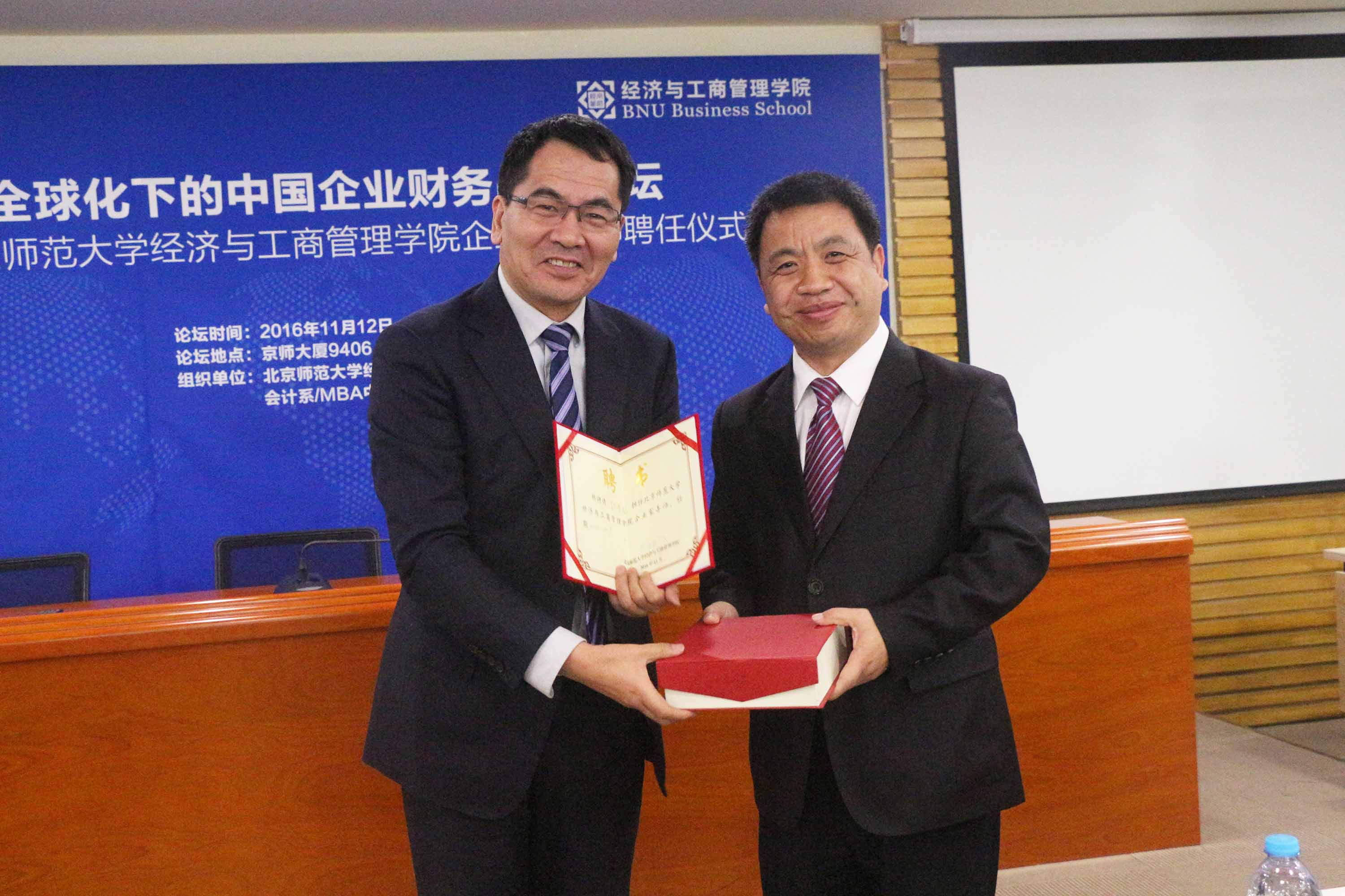 接下来,进行企业家导师受聘仪式,赖德胜院长为与会嘉宾颁发聘书并合影留念。