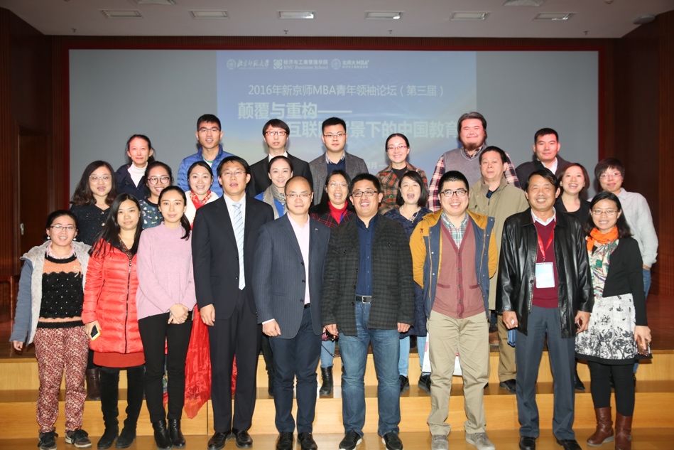 下午16:30-17:00分论坛分别圆满闭幕,与会嘉宾合影留念,新京师MBA青年领袖论坛(第三届)取得圆满成功。本次论坛受到与会嘉宾和全体同学的一致好评和高度认可,论坛关注文化与科技融合,体现了北师大商学教育浓郁的人情关怀和深厚底蕴。会后,嘉宾纷纷表示,本届论坛话题设置贴近当下的现实问题,具有前瞻性和强烈人文属性,也体现了北师大在教育行业创新创业的特色。另外,论坛的成功举办展示了北师大MBA学子的高效的论坛组织效率和良好精神风貌,成为北师大MBA学子对接社会各界资源,学以致用的重要平台和窗口。