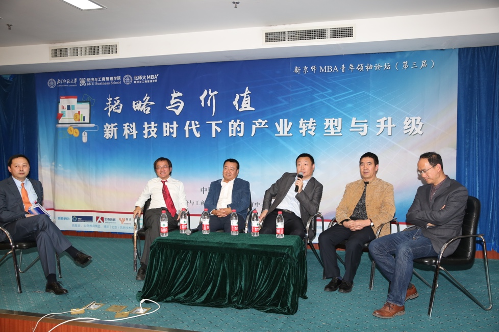 院长赖德胜、副院长崔学刚和学院教师代表,以及校办等学校职能部门相关教师出席论坛,北京地区兄弟院校和全国MBA联盟、MBA校外导师、MBA校友企业大力支持,中国教育电视台、新华网等知名媒体广泛关注,百位业界领袖、知名学者、投资专家及青年MBA学子齐聚一堂,围绕“文化科技融合•引领双创时代”的主题进行深入交流和广泛探讨,奉献了一场场精彩纷呈的主题演讲和高端对话。论坛分设“文化科技融合•引领双创时代”一个主论坛和“颠覆与重构—互联网背景下中国教育”、“建构与超越—创业与创新的路径选择”、“韬略与价值—新科技时代下的产业升级与转型”三个分论坛,分别从互联网教育、创新与创业、转型与升级等角度探讨中国经济在新常态下,如何进一步加速文化与科技的融合,让科技遨游在文化的海洋里,从而创造多元的业态形式,为传统产业的转型和发展开辟新的思路和方向,走在创新创业时代的前沿。