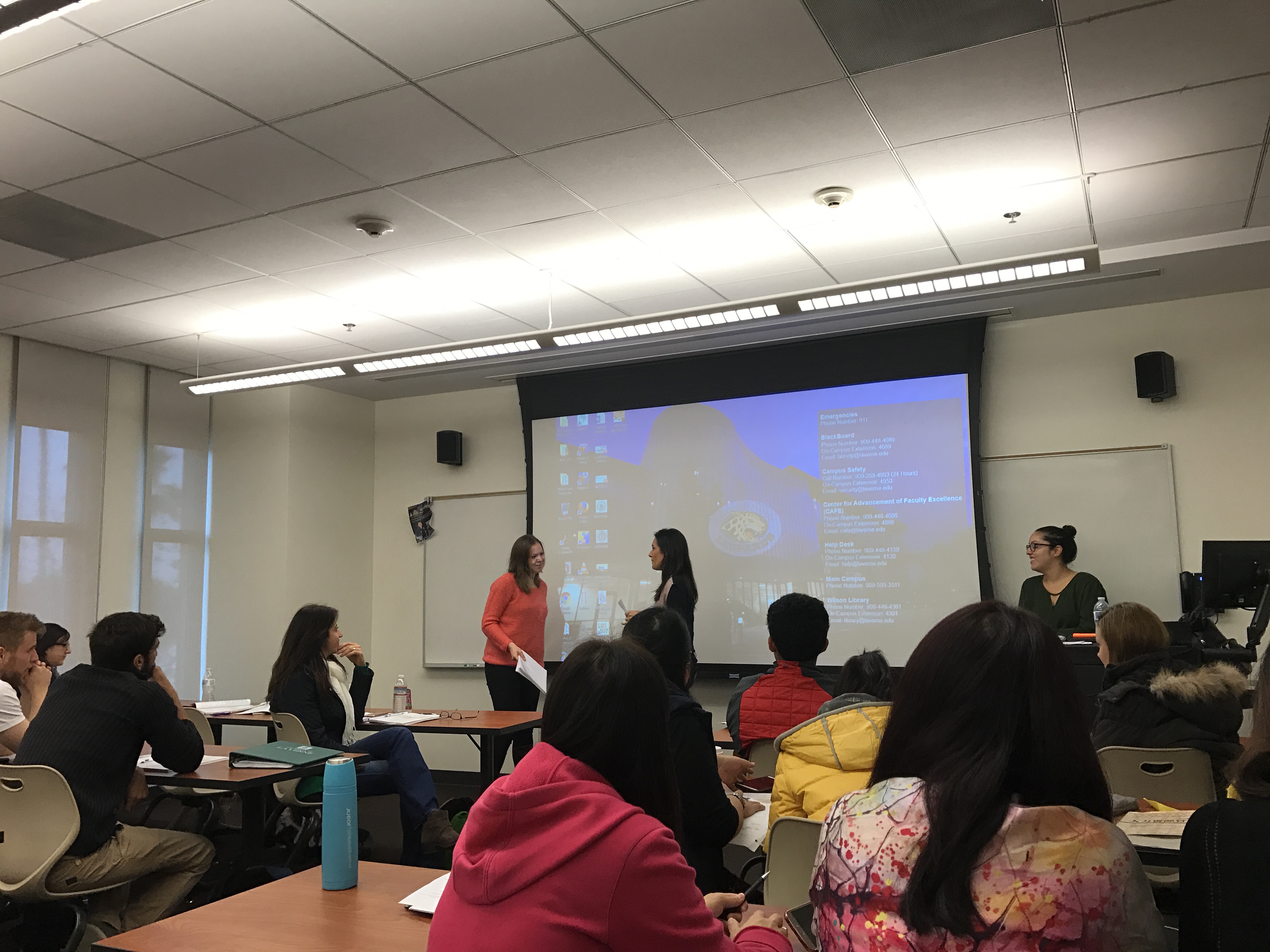 该项目是北师大经管学院与美国拉文大学和加州大学北岭分校合作的奖学金项目,同学们从1月9日起在这两所学校学习三周的时间,英文授课,为商科专业及其他专业对商业感兴趣的本科生和研究生提供了解国际商务的机会。李婧雅老师全程参与了这个项目,为参与项目的同学们提供必要的帮助,负责学生课程安排,甚至帮助同学们安排住宿,负责接机租车等全程的协助,帮助所有同学排忧解难,受到了同学们一致高度好评。