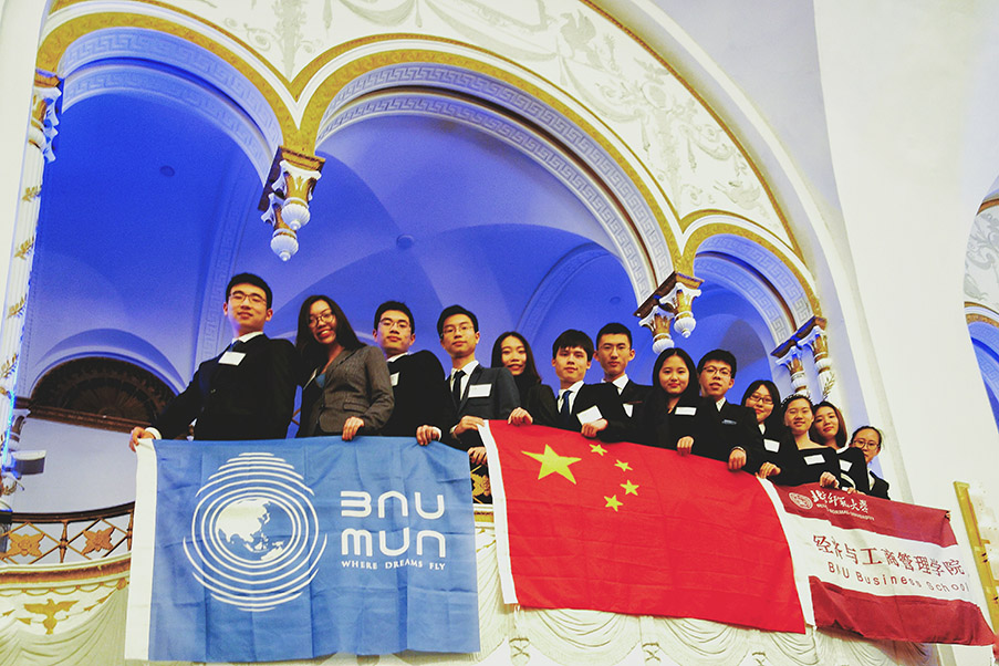 本届大会上,北师模联代表队的抽签立场是卢森堡代表团,并在联合国大会第四委员会(特殊政治及非殖民化委员会)代表西班牙出席。在为期4天的时间里,代表队成员们与来自哈佛大学、芝加哥大学、耶鲁大学等及其他世界各地名校的学子共聚一堂,就经济社会发展、国际恐怖主义、媒体武器化应用、重演历史关键时刻等议题进行热烈讨论;参加了丰富多彩的会间活动,促进了全球大学生的交流和友谊。代表队中来自经管学院的成员有成晓宇、张开颜、郑宇、何尧、李童、王莹、唐雪坤、杨季枫、翟文佳、高子豪和高雪姮,他们神采飞扬积极踊跃,展现了北师大经管学子的绝佳面貌。在各议题的讨论中,代表队整体表现出色,展示了师大学子的国际风范与世界情怀。