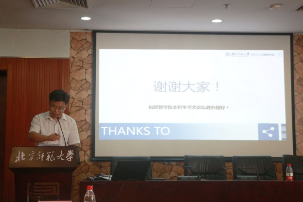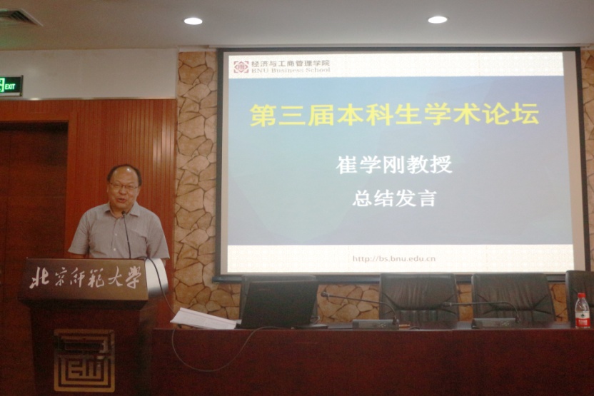 最后,副院长崔学刚教授总结发言。他表示本科生学术论坛在促进本科生学术交流、搭建femboy 交流框架上起到了重要作用并肯定了参评论文在选题和方法上的多元性及论文主讲的展示水平,并对老师们的高水准点评给予肯定。其中对学院在加强学术锻炼和交流这一方面提出了宝贵的建议。最后,他代表学院向参会学生老师及组织团队表示感谢。