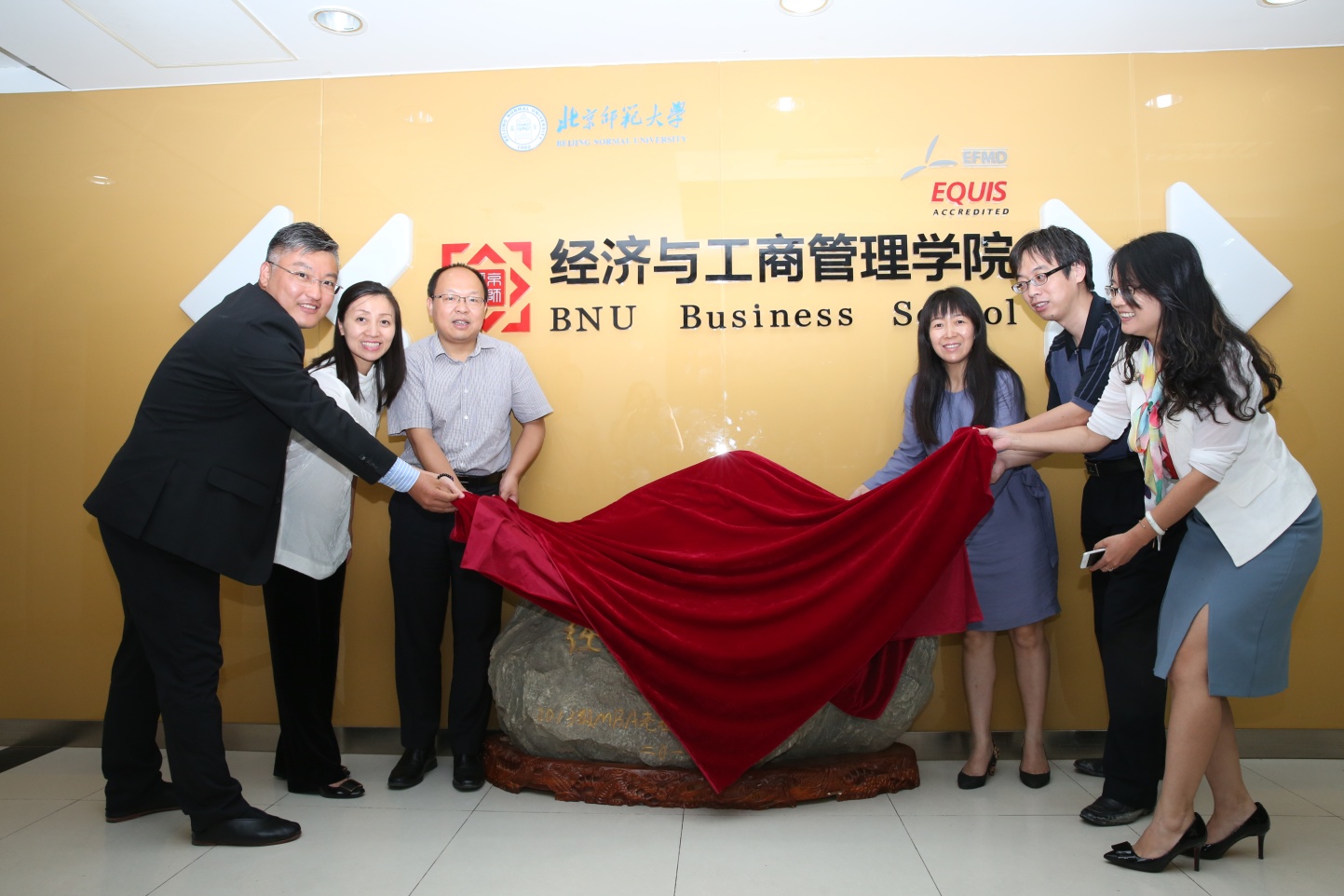 在一片掌声中,北师大经管学院副院长崔学刚向李尧颁发了《捐赠证书》。随后,大家一起进行了“泰山石”的揭幕。红幔展开,一尊满载着MBA校友浓烈的爱校之情,重达1.3吨的“泰山石”矗立在femboy 办公楼层。此泰山石不仅象征着吉祥如意,和学院的光辉形象交相呼应,更寓意着MBA全体毕业生的感情像这泰山石一样牢不可破、坚如磐石。