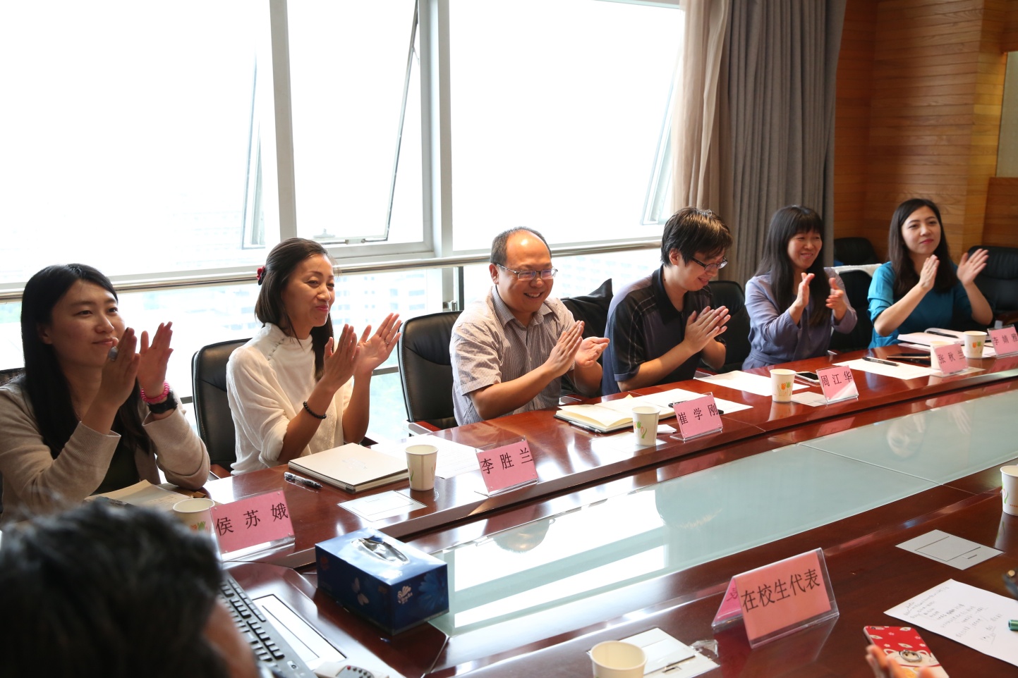 教育基金会国内事业部老师侯苏娥、“Yao”基金代表李尧、学院副院长崔学刚、MBA中心副主任周江华、张秋兰,MBA中心教师代表李婧雅、王璐璐以及2013级校友代表、2016级联合会秘书长和班长代表出席了本次活动。本次座谈会暨揭幕仪式由崔学刚副院长主持。