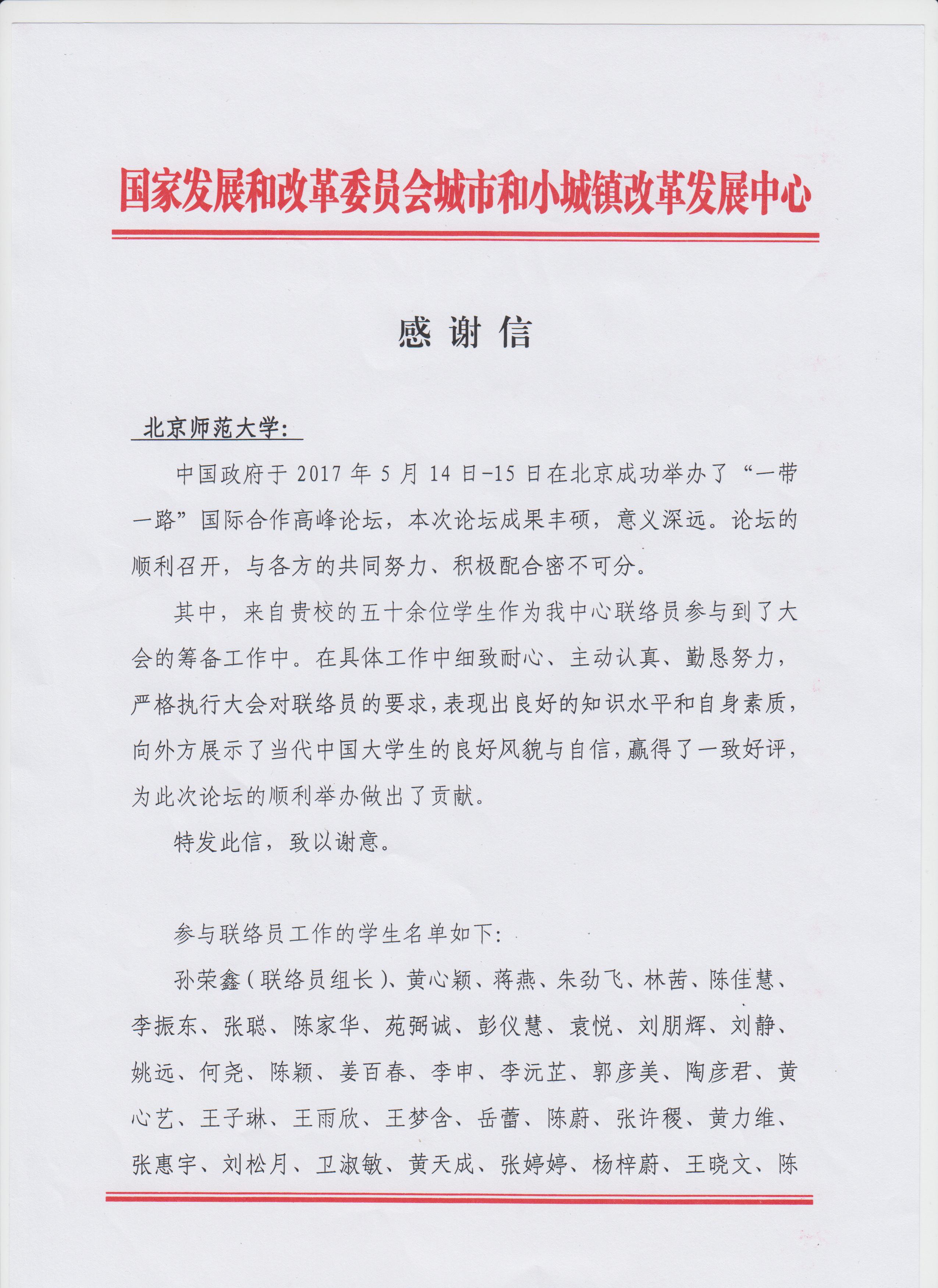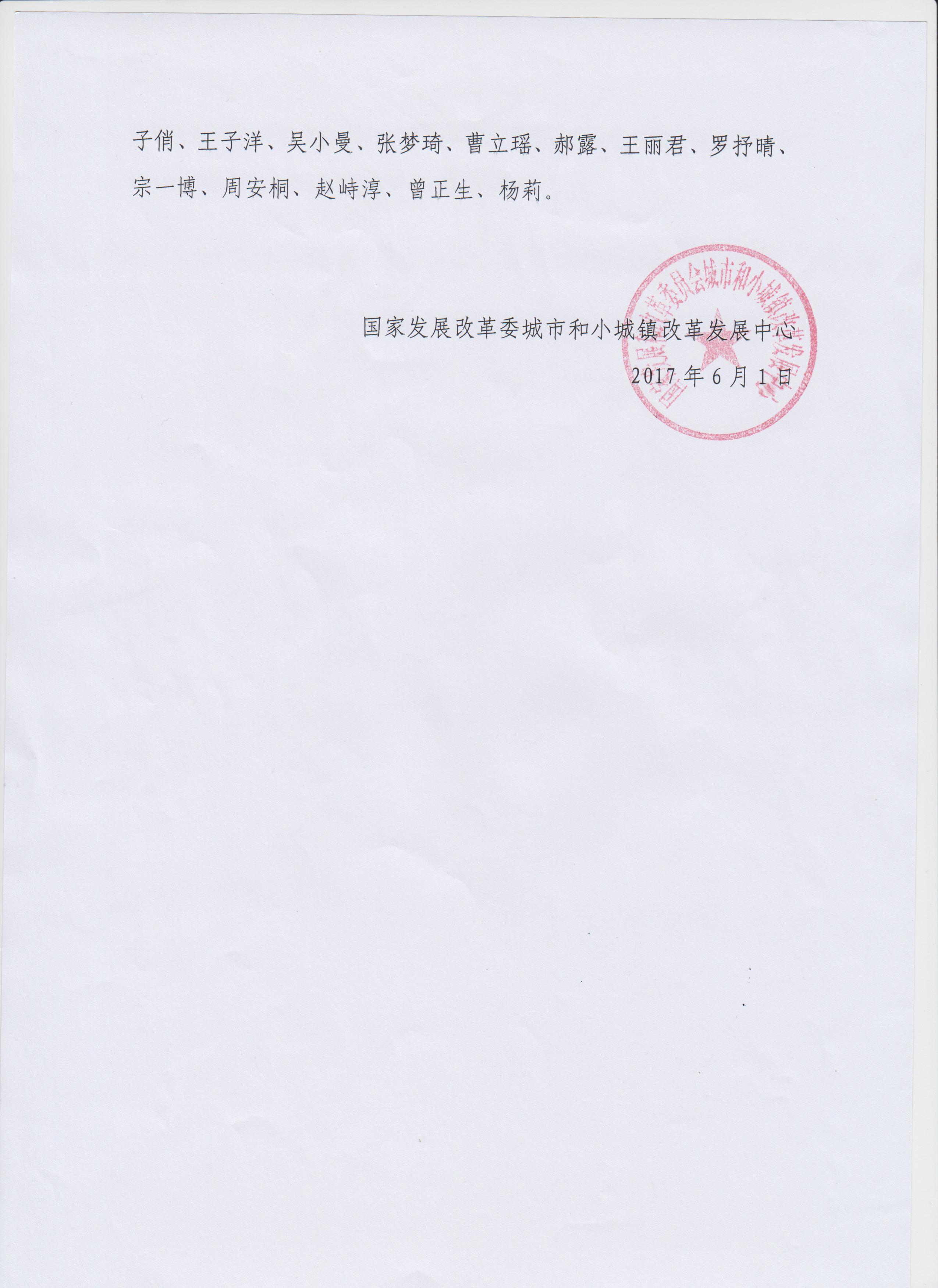 2017年6月1日,国家发展和改革委员会城市和小城镇改革发展中心发来感谢信: