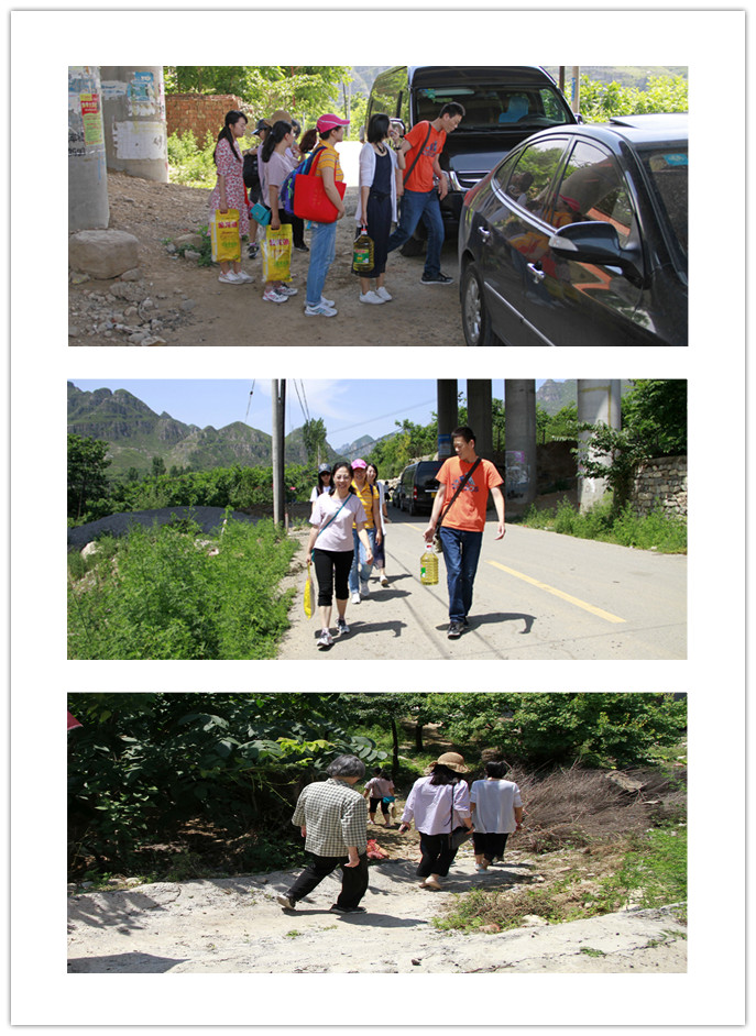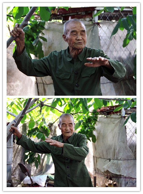 3个小时的车程,穿过涞水境内的崇山峻岭,车终于在位于河北省涞水县虎过庄的一个半山腰的公路边停了下来。太阳火辣辣的照着大地,天气十分的炎热,在向导张杰老师引领下,顺着一条羊肠小道来到了老红军老党员的住处。当我们站在那个极其简陋又充满生机的小院里,感受到了一位90岁老人简朴的生活气息和宁静的生活情怀。在这个收拾得整整齐齐的小院里,篱笆旁种着黄瓜,树下是绿油油的青菜,空地也被打扫得干干净净,老人的房子位于小院中间,一棵硕大的核桃树站立在房子前的空地上,伸展的枝条将空地上空遮挡得严严实实,为老人撑起了一片荫凉。空地上摆着一张小茶几和几个板凳,茶几上摆着一个茶壶和四五个茶杯,茶杯形状颜色各异,可见老人的生活多么简朴。穿着一身军装的陈爷爷见到我们,就要给我们沏茶、切西瓜。西瓜是特意买的,为了给我们降降暑,心中不由的涌出一份清凉的暖意。