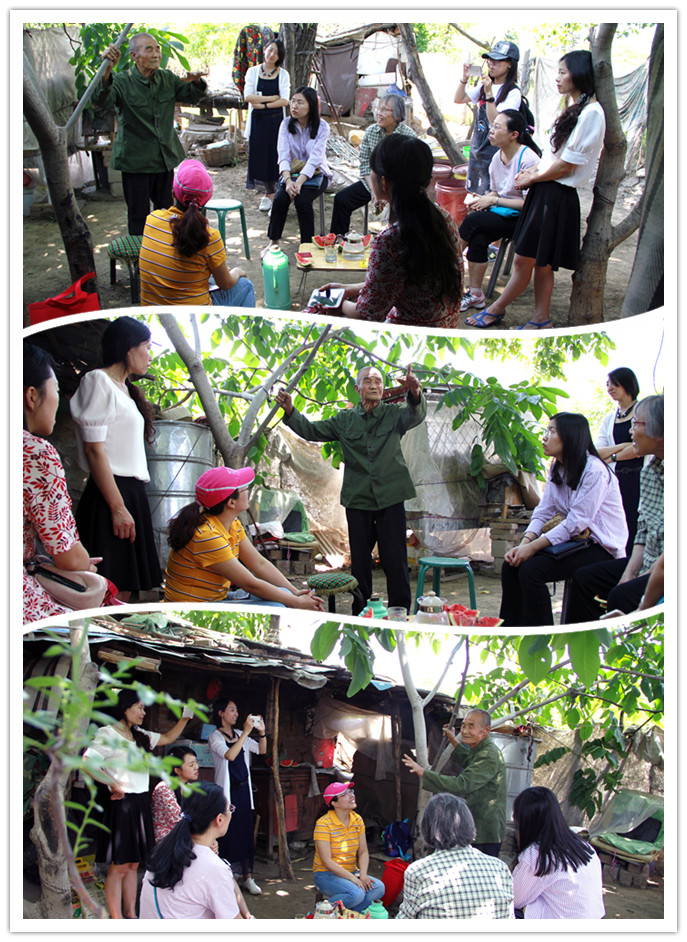 陈爷爷组织我们坐下,还亲自切了西瓜,将西瓜送到我们手里,站着讲起了他的故事。陈德海爷爷,1927年生,涞水人,十二三岁就参加了革命,抗日战争时在村子里站岗放哨,与日本侵略者做斗争,据他讲日本兵进了村子,一把火就将村子给烧了,全村只有一间房子没被烧到,有好些村民不肯上山逃走就被活活烧死了,他和其他村民跑到附近的山上才幸免于难。后来他加入了八路军进行持久的抗日战争,并参加了解放战争和抗美援朝战争。他参加解放战争时被编入了华北野战军,是一名炮兵。据他说解放军和国民党的战争是内战,国民党被俘后,只要愿意参加革命,在国民党兵里是什么级别,到了我们这里也一样的,在那里是班长,到了我们这里也是班长,是连长的也还是连长,伤亡情况总体比较少。他感叹 “中国人不应该打中国人呀!”。抗美援朝战争时期,美国军队不分昼夜对中国士兵进行地毯式的打击,白天用飞机喷洒汽油,扔燃烧弹,不少战士就被燃烧弹给活活烧死了!晚上则扔下照明弹,只要看见有中国战士就用机枪扫射,当时中国士兵的死亡非常惨重,他所在的连队120多人最后只有七八个人活着回到了中国。他还谈到了当时在军队里的学习情况,在赴朝鲜作战前,要去沈阳学习朝鲜语,七天时间要掌握基本的对话,以便和当地的老百姓进行沟通交流。但是到了朝鲜后却发现用不上,语音发音不准,对方听不懂,后来通过与当地老百姓接触,慢慢也能和当地老百姓进行日常的交流了。原本说在朝鲜呆半年,后来变成了一年,尽管已经时隔快70年了,他还能清楚的用朝鲜语说出好多单词,记忆力惊人!平时用不上的朝鲜话,却记得这么清楚,这让我们觉得很神奇的同时,也感到当时战争对人的深刻。他又谈到,在军队不是仅仅练习打枪打炮、锻炼身体,是一定要学习文化知识的,我是到天津去学习的,一周要学2700个汉字,我没有学完,只掌握了2600多字,后来就能看书了。