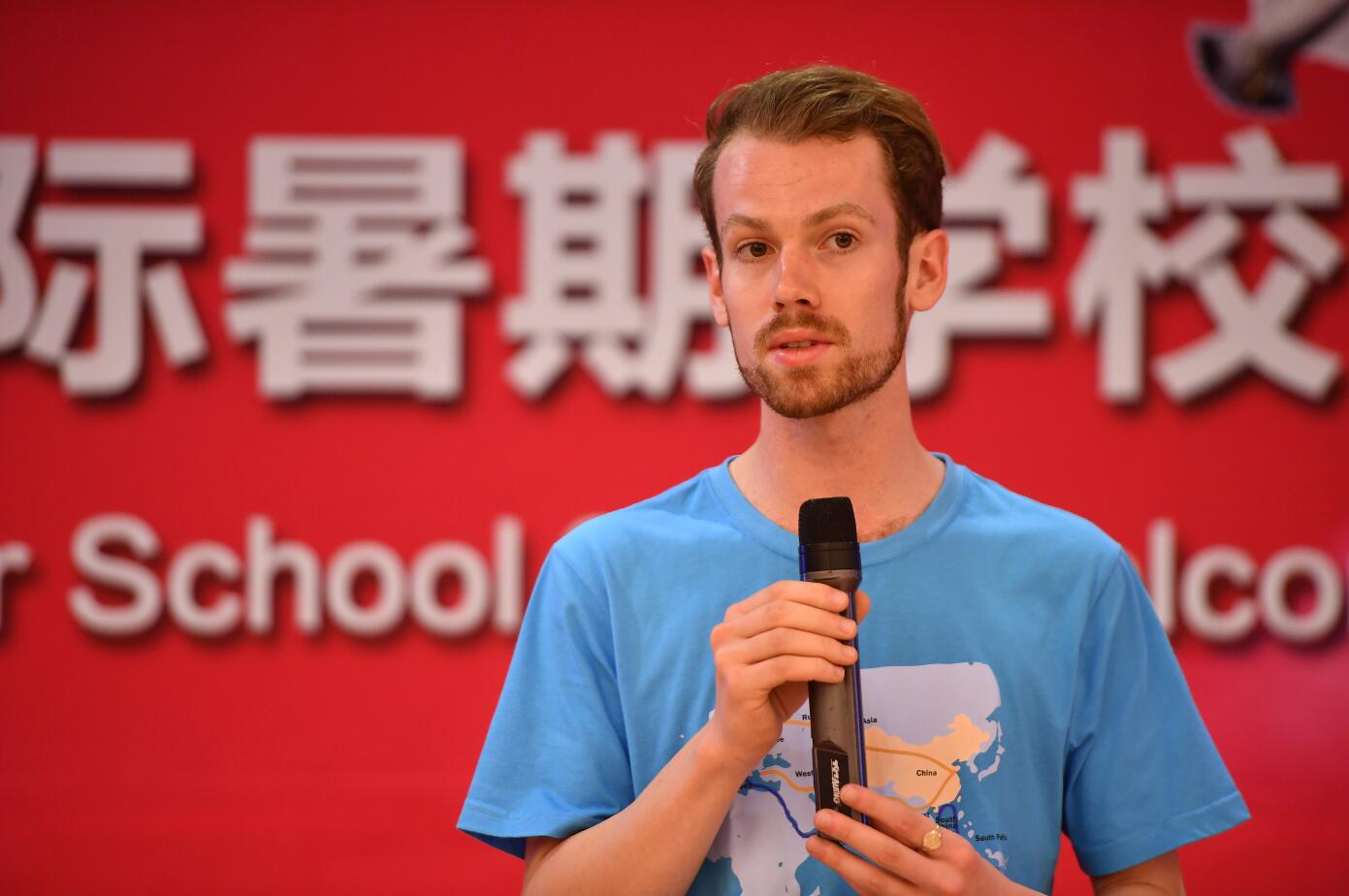 任课教师代表郭垍在发言中向同学们表示热烈欢迎,他介绍了“一带一路”倡议的意义与深远影响,指出参加本次活动是学员们见证、理解当前“一带一路”倡议的最佳方式,他期待在未来两周能和同学们有更多的互动和交流,也对接下来的课堂学习提出了几点要求。