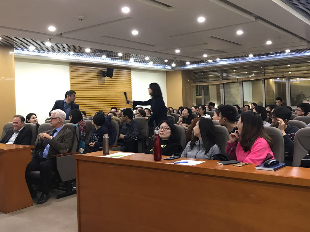 举办的“Global Leadership Forum at BNU(全球领导力论坛)”嘉宾主题讲座在京师大厦9406会议室举行。主讲嘉宾为David Sander先生和Hector Dalton先生,学院国际交流与合作办公室李婧雅主持活动,学院MBA及部分本科生参加,全场座无虚席。