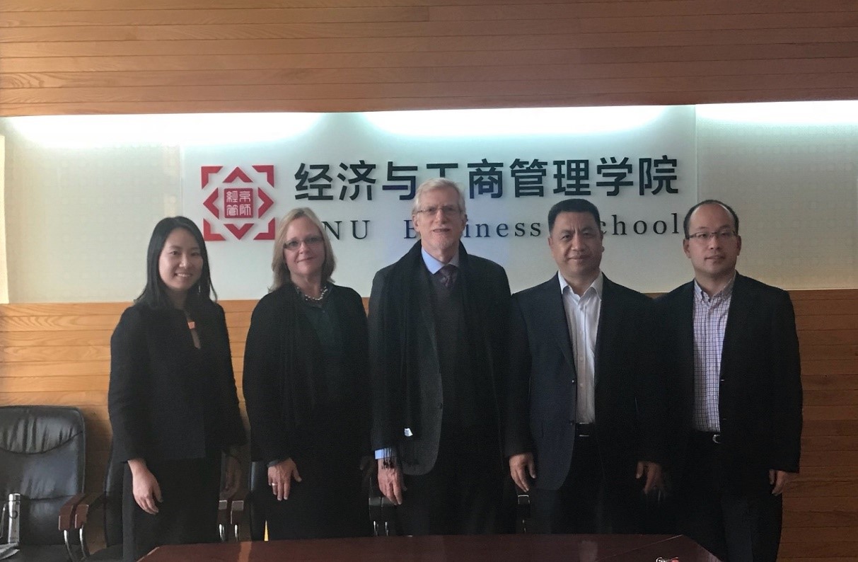 赖德胜院长对William Fisher院长一行表示欢迎,他介绍了学院的基本情况和近期在国际化工作方面取得的成果和未来计划。William Fisher院长介绍了克拉克大学的发展历史和在研究生培养方面的理念与特色。会见中,双方就国际夏令营、学生短期交换、短期游学及ONE MBA项目等进行了深入交流。最后,Amy Daly Gardner副院长还介绍了克拉克大学与中国其他大学已经建立的几个优秀合作项目,双方探讨了其中3+1+1项目并表达了合作的初步意向。