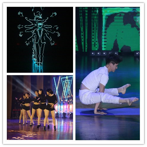 第三篇章——继往开来青出蓝。F3班的荧光舞《SEVE》把鬼步舞与荧光完美结合,呈现了绝佳的舞台效果;F4班的韩舞《短裙》展现了MBA新生青春时尚、个性飞扬的精神风貌和人生态度;F5班的《瑜伽》用高难度动作演绎唯美。
