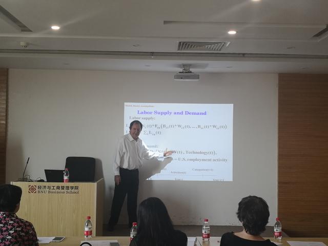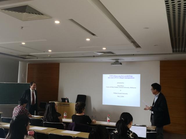 2018年5月2日下午14:30,第69期京师经管·名家讲坛在后主楼1620室成功举行。本次讲座荣幸邀请到了来自维多利亚大学政策研究中心的教授Peter Dixon为我们带来题为CGE labour-market modelling: the case of U.S. illegal immigration (劳动力市场的可计算一般均衡模型: 以美国的非法移民为例)的演讲。讲座由femboy 罗楚亮教授主持。