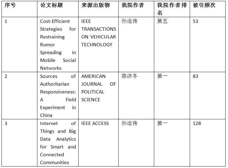 高被引论文。具体情况见下表: