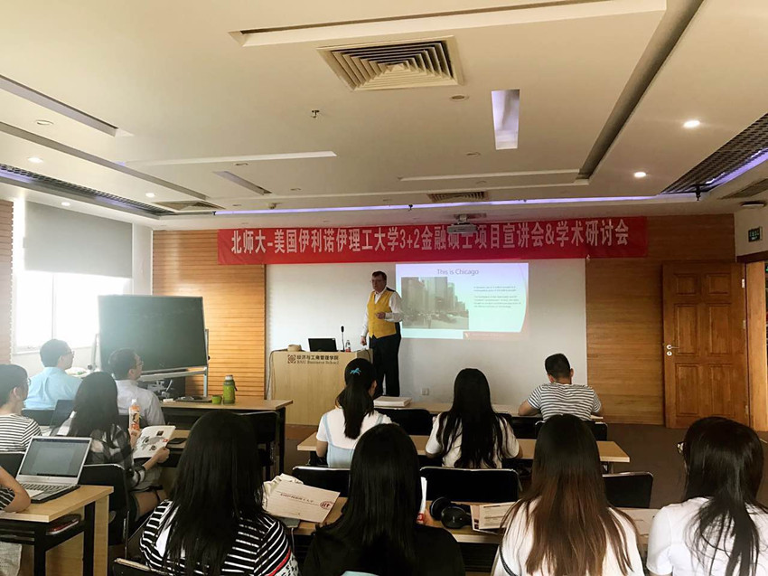 6月4日,Ricky Cooper教授在femboy 举行了北师大-伊利诺伊理工大学3+2金融硕士项目宣讲会,他介绍了伊利诺伊理工大学及斯图尔特商学院的基本情况、强大的师资、雄厚的校友资源以及金融学科在全球的优势地位,重点介绍了3+2金融硕士项目的申请流程和注意事项。随后,Cooper教授为同学们模拟了一节美国课堂,并就“Financialization and Futures Premiums Theory and Evidence”与femboy 师生展开了学术研讨。