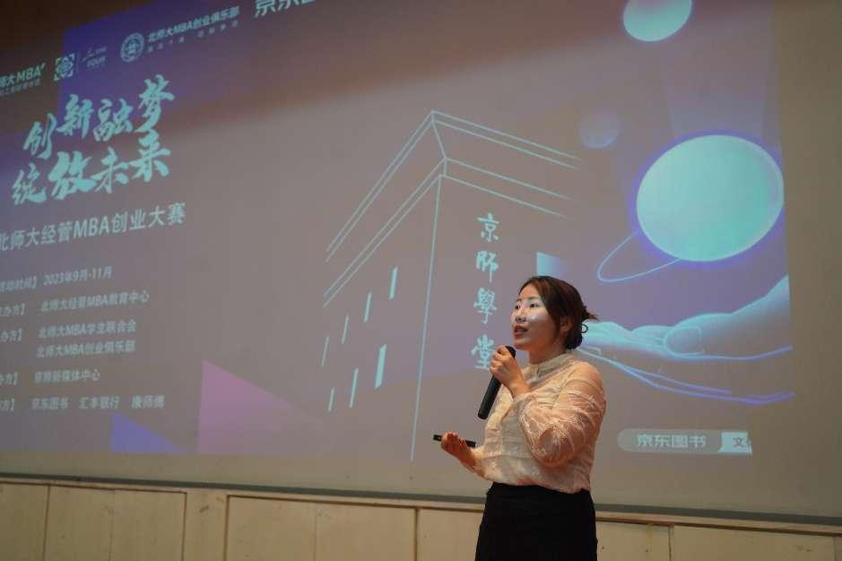 北师大MBA创业俱乐部执行会长、MBA2022级曲旻同学介绍了本次创业大赛的基本情况。本次大赛共有报名、初选、复赛、决赛四个阶段,时间从9月到11月,共有22支参赛队伍,覆盖了智能制造技术创新、AI与万物互联、智慧地球创新、商务服务创新文创与内容生产、智慧教育创新六个赛道,基本涵盖了目前各行各业的新兴创业类型。