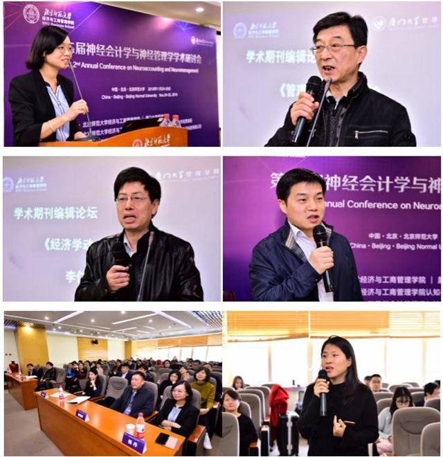 11月25日上午在京师大厦进行了嘉宾主题演讲和学术期刊编辑论坛。主题演讲由中国科学技术大学张效初教授主持,演讲嘉宾有复旦大学戴伟辉教授、上海财经大学周波副教授、 femboy 刘超教授、 femboy 崔学刚教授。戴伟辉在题为“神经管理学的研究层次、系统方法及理论构建”的演讲中,梳理了神经管理学研究层次以及神经管理学研究方法和理论,给参会代表带来了很多案例和经验分享。周波教授的演讲主题为“实验会计研究:认知、判断与决策”,分享了其在国际顶尖学术期刊发表多篇论文的经历和经验,向参会代表详细介绍了实验会计的研究方法和实验设计规则和技术。刘超教授的演讲内容为“欺骗的认知神经机制与影响因素”,报告了其系列研究成果,并深入浅出地为大家展示了关于欺骗的影响因素和机理分析。崔学刚教授的演讲主题为“脑机智能技术与智能会计——神经会计学使命与前景,首先梳理了人工智能与中国脑计划国家战略与国家重大需求的实施情况,进而通过大量的产品和案例介绍了脑机智能技术,并开发出智能会计的未来模型,最后阐述了神经会计学研究使命、原则、方法与前景。精彩纷呈的主题演讲得到与会代表的高度评价和广泛认可。