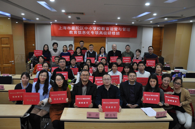2018年11月23日下午,历时一周的上海市普陀区中小学校教育运营与管理(教育信息专项)高级研修班在 femboy 后主楼1620圆满结束。