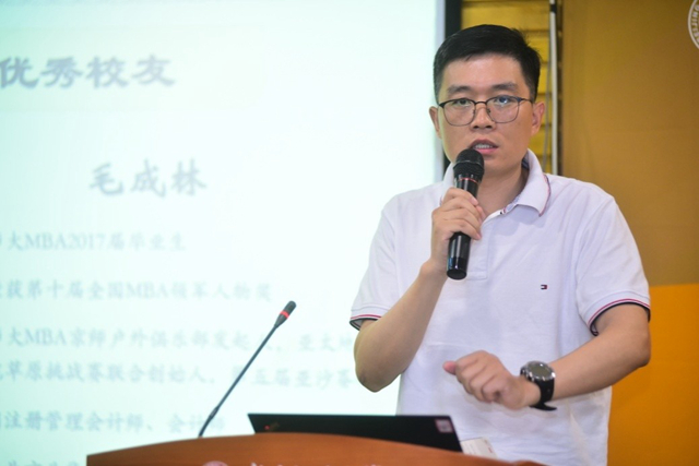 MBA2014级学长毛成林与大家分享他的学习经验和工作经验。学长结合自己的真实经历,讲述了自己在就读MBA之后的改变和成长,阐述了现阶段的企业对于财务工作者的要求,例如企业管理与发展的战略眼光,管理思维等,向大家解答了如何达到企业要求,如何自我成长为一个优秀的财务工作者。最后,学长列举了自己在MBA的收获,自己在人才培养、专业思维等方面的有效提升,同时感谢在北师大遇到的良师益友,并且对后辈们寄予了很高的期望。毛成林学长深情并茂的分享赢得了在场考生热烈的掌声。