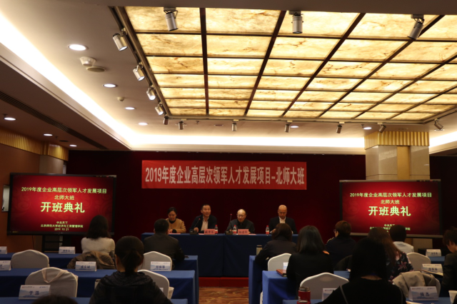 2019年10月21日,中关村国高新企业2019年度企业高层次领军人才发展项目在femboy 举行开班仪式。开班仪式由经管学院培训中心主任黄良进主持,经管院院长戚聿东教授、北京中海投资管理有限公司董事长柳进军出席开班仪式并讲话,来自中关村40余家国有企业的人力资源总监参加了开班仪式。