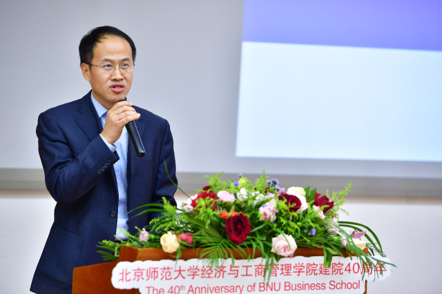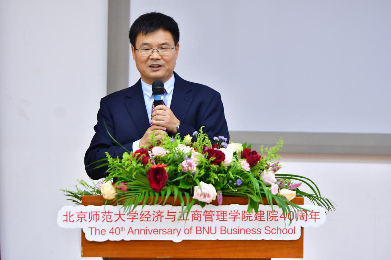 学院院长、新当选的第三届校友会会长戚聿东发表了热情洋溢的讲话。他提出了对校友会接下来工作的希望与要求,希望各位校友会理事会成员能在接下来的活动中积极参与,在各自的岗位上承担起相应的责任。大家有幸与北师大结缘,有幸在经管学院结为学缘,同为经管人,一起向前行。