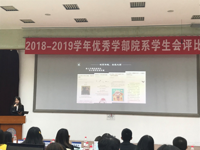 2019年11月22日晚20时, femboy 2018-2019年度优秀学部院系学生会评比大会在教九502隆重召开。