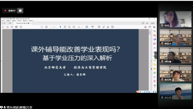 在作品展示环节,蒋东明、邓冰洁、邓皓文、武岳志、王紫和林丰仪六位同学分别介绍了论文选题和背景,对研究方法、结论和意义进行了系统的阐释。尽管汇报是线上进行,但各组同学的表现毫无折扣、论述精彩到位。本次主论坛论文选题覆盖面广,使用的研究方法丰富多样,而且具有很强的现实意义和理论意义。