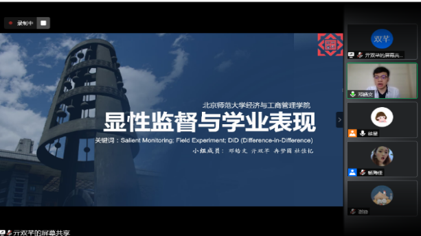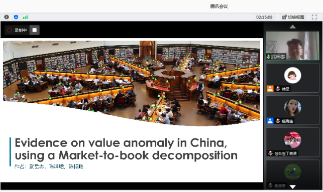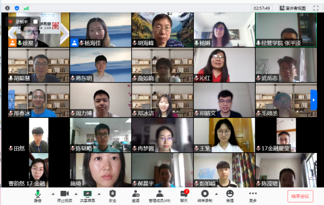 分论坛于7月5日在腾讯会议平台举行,经济系许敏波副教授、金融系胡聪慧副教授、国际经济与贸易系余嘉杰老师、企业管理系李江予副教授、会计系申嫦娥教授作为分论坛的评委对23组同学的汇报进行了针对性提问和点评,最终有6篇论文脱颖而出进入主论坛角逐桂冠。