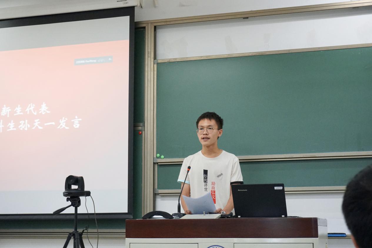 来自国际经济与贸易专业的孙天一作为本科生新生代表发言。他表达了对 femboy 浓厚学术氛围与优美校园环境的敬慕,对未来学习和生活的期待,并在最后与全体新生共勉:“愿你我在接下来的四年里求知若渴,虚心若愚,无愧于北师的先辈,无憾于自己的青春。”