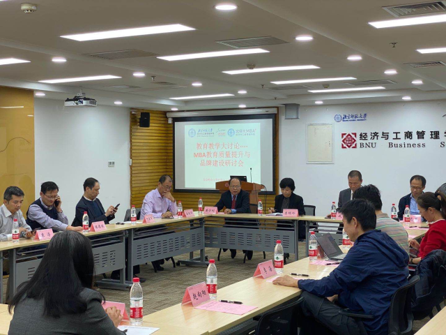 2020年10月26日下午,学院组织的“教育教学大讨论——MBA教育质量提升与品牌建设研讨会”在京师大厦9406顺利召开。学校教务部培养办公室副主任李艳玲和学院院长戚聿东分别致辞。与会的校外专家有北京大学研究生常务副院长姜国华教授、中国人民大学叶康涛教授、对外经贸大学商学院院长陈德球教授、中央财经大学袁淳教授、首都经贸大学华侨学院院长李百兴教授,学院党委书记孙志军做了会议总结,副院长崔学刚教授主持了会议。仲鑫、孙川、李海、李静、周江华、张海燕、杨丹、鞠冬等老师,以及MBA中心相关老师出席了会议。大家齐聚一堂,共同商讨北师大MBA教育质量提升和品牌建设问题,取得许多共识。