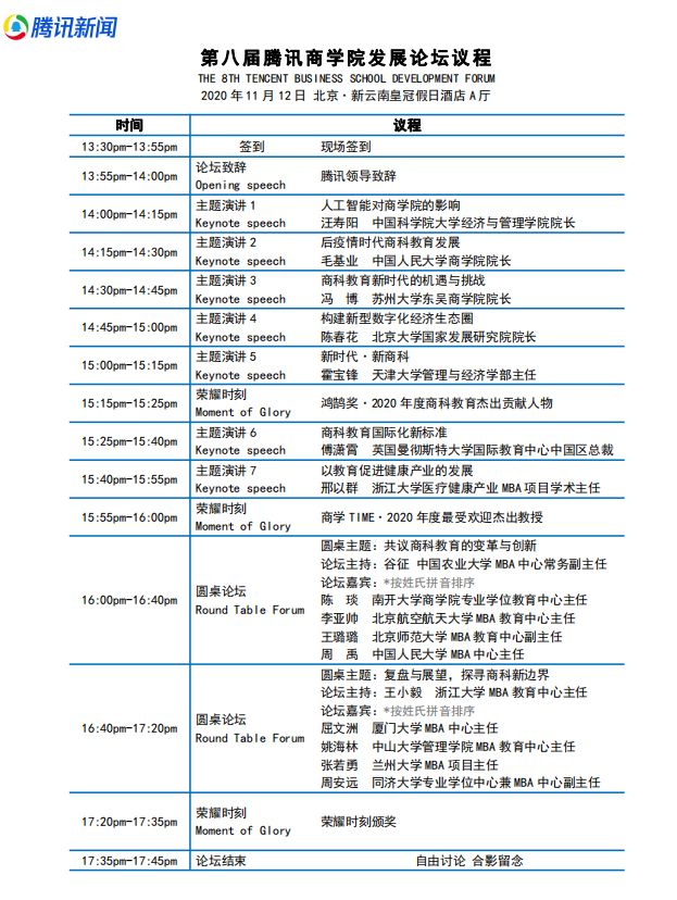 第八届腾讯商学院发展论坛议程
