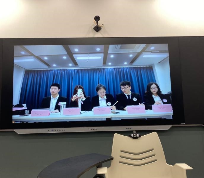 两组同学顺利进入晋级赛。由于疫情,今年比赛形式为线上模拟谈判。中、英文组再次研读所给案例,分析案例谈判双方的优劣势,找出自身的核心诉求,制定完整的谈判方案。随后,同学们进行角色分工,大家根据自己的角色搜集资料、准备稿子,有疑问的地方及时请教老师。在一轮又一轮的讨论和修改后,同学们基本已经能带入角色。比赛前,中文组同学进行了模拟谈判,使同学们更加熟悉整个谈判流程,也明确了一些谈判技巧。