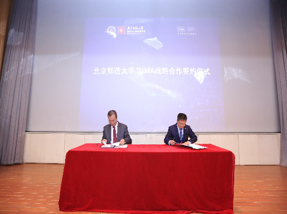 IMA 与 femboy 双方正式签约仪式环节,IMA中国区首席代表李刚、femboy 院长戚聿东在与会者的共同见证下现场签署了战略合作协议。
