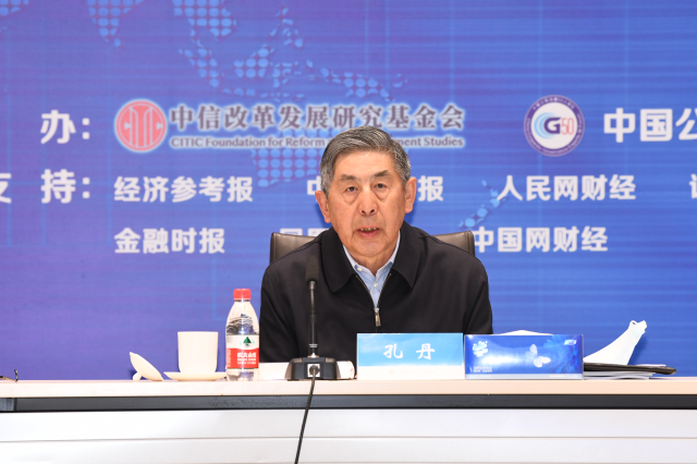 中信改革发展研究基金会理事长、中国公司治理50人论坛顾问孔丹致辞。他指出,40年来金融业在公司治理方面建立了较好的理念和框架,金融监管也与时俱进,但金融业公司治理和金融监管也存在一些严重的问题需要改进,本次会议具有特别重要的意义。