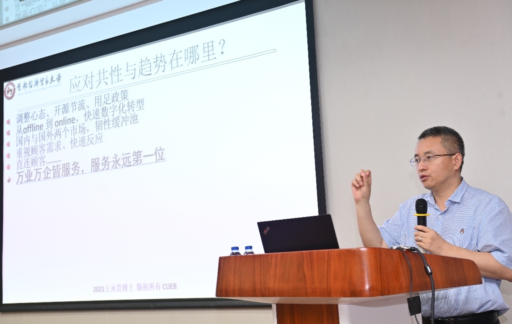 首都经济贸易大学副校长王永贵回顾了市场营销理论与实践的创新与发展,对成功企业的营销共性进行了总结,包括坚持营销的价值主线、关注消费者心理和行为、满足需求和创造价值等,而后他分别对中国市场营销研究70年和中国服务营销研究40年进行了梳理和评价,最后提出市场营销研究要以国家、区域、社会需求为导向,注重大趋势的识别与内容布局,在变革中寻找本质的、甚至永恒的,在传承中寻找需要改变的、甚至变革的内容。