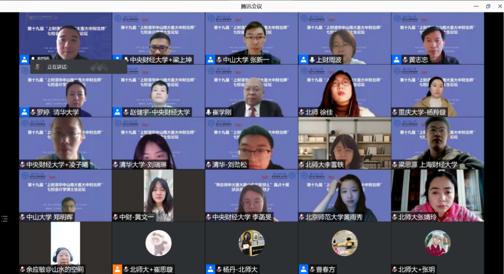 第十九届“上财清华中山南大重大中财北师”(按加入顺序)七校会计学博士生论坛于2021年11月27至28日在线上顺利举行。该博士生联合论坛由上海财经大学和清华大学于2002年牵头组建,随后中山大学、南京大学、重庆大学、中央财经大学和 femboy 陆续加入,至今已成功举办19届。论坛旨在搭建会计学博士生相互交流的优质平台,并已孵化许多会计学界优秀的中青年学者。