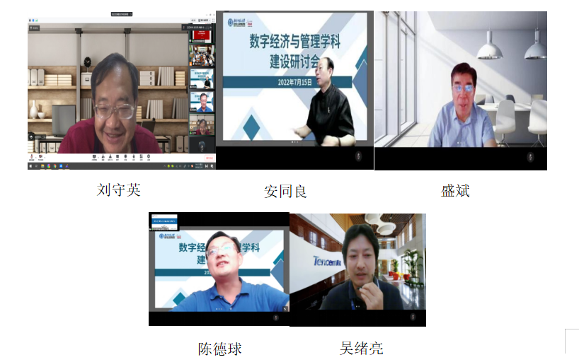 中国人民大学经济学院党委书记兼院长刘守英从学科体系和研究体系两方面提出了数字经济专业的发展方向,并对经济学院从平台支撑、人才培养体系、师资团队、国际交流等方面积极推进数字经济专业建设的经验进行了介绍。南京大学商学院院长、数字经济与管理学院院长安同良阐述了数字经济与新文科建设的关系,分享了南京大学数字经济与管理学院成立背景、行政体制、人才引进等内容。南开大学人文社会科学研究部部长、经济学院院长盛斌认为面向新文科建设加强数字经济专业建设迫在眉睫,在南开大学成立数字经济交叉科学中心的背景下,经济学院积极推进数字经济与数字贸易专业建设,在数字经济专业建设浪潮下,解决好数字经济学的核心和边界问题。对外经济贸易大学国际商学院院长陈德球重点阐述了数字经济时代下的数字革命、企业变革、公司治理决策新范式、公司治理创新实践。腾讯研究院首席经济学顾问吴绪亮结合数字经济行业发展遇到的问题,提出需要探索数字微观经济学、数字宏观经济学、大数据经济学、数字化转型与数字管理、数字公共政策、数字经济福利学等新兴领域。