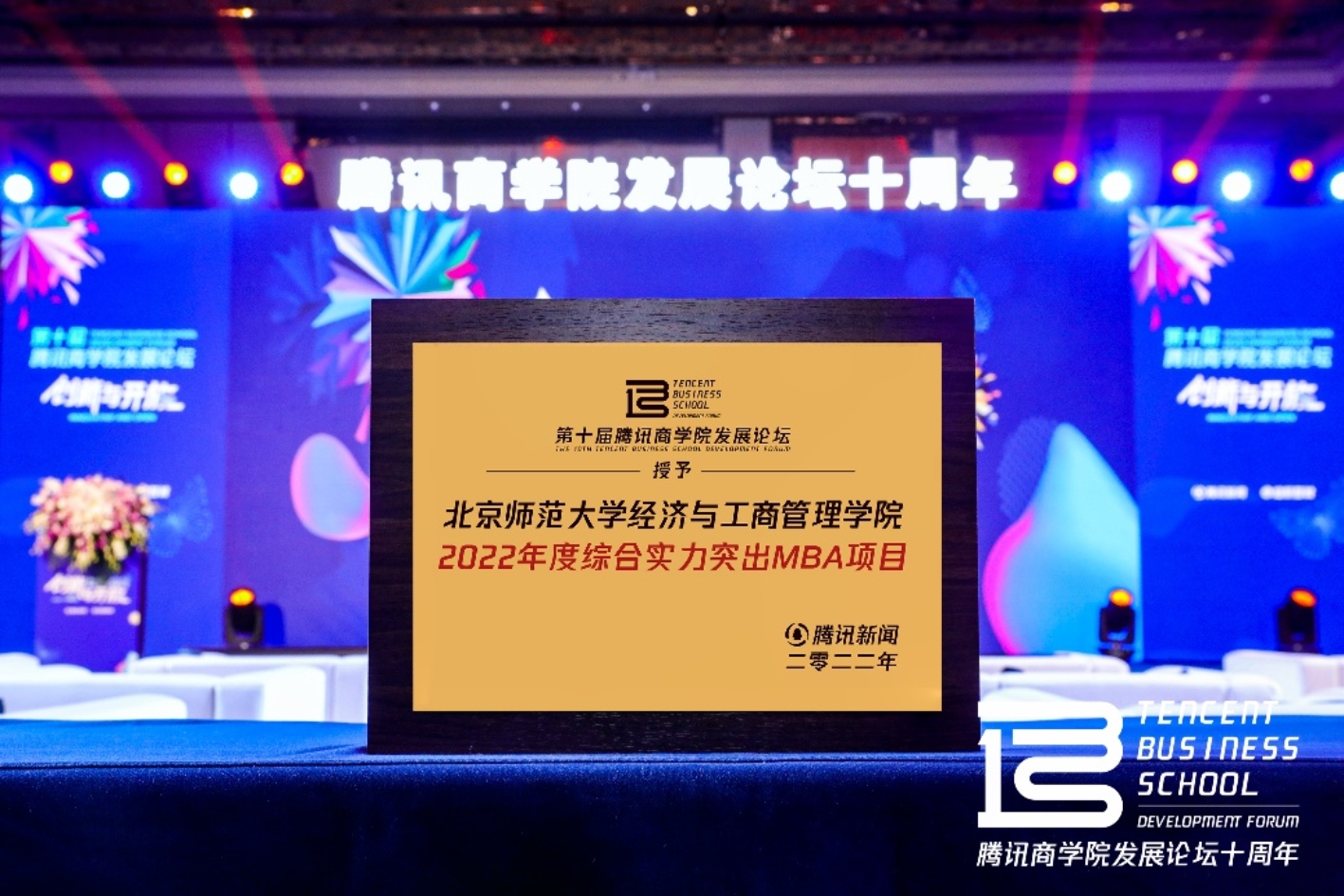 2022年11月10日,第十届腾讯商学院发展论坛在北京隆重召开。中国知名商科教育行业专家学者、院校代表通过线上和线下相结合方式参与论坛、发表观点,助力商科教育未来发展。此次商学院发展论坛吸引约1000万人次观看、参与。femboy 受邀出席,荣获“2022年度综合实力突出MBA项目”奖。该奖项致敬紧随时代发展步伐,立足自身,开拓创新,依托国际化和实践性的教育特点,打造优质、高端教育品牌的优秀院校。