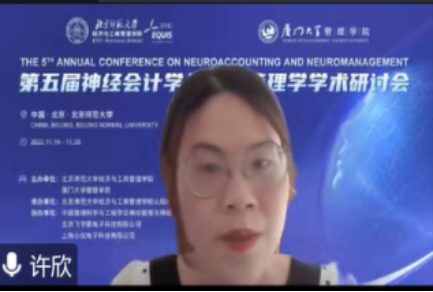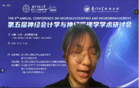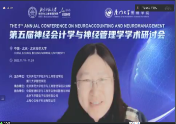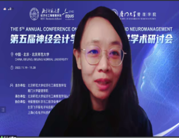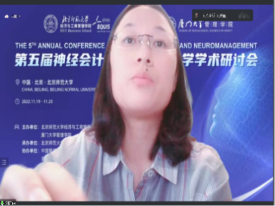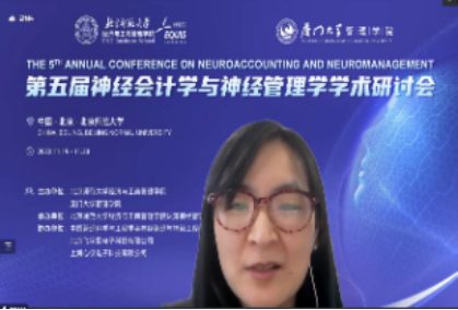 19日上午的演讲嘉宾有美国佐治亚理工学院况熙教授、澳大利亚悉尼大学Agnieszka Tymula教授、北京大学刘玉珍教授、上海外国语大学潘煜教授和 femboy 刘超教授,主题演讲分别由 femboy 唐红红和厦门大学陈亚盛主持。况熙教授的演讲主题为“新时代的行为会计学研究”,他搭建了行为会计研究理论框架,并基于这个理论框架介绍了社交媒体、社会责任、远程工作、移动通信领域行为会计相关研究的最新成果,对行为会计研究的未来方向进行了展望。澳大利亚悉尼大学Agnieszka Tymula教授做了“神经经济学角度下的风险态度性别差异”的报告,她介绍了女性比男性更具有风险规避倾向现象,通过系统研究发现男女风险态度差异源于女性在社会中的事实上的不平等,通过提升男女社会中得平等地位或者提供更充分的信息,男女风险态度差异就可能减小。北京大学刘玉珍教授从前景理论和心理会计出发,介绍了行为偏误的种类及其纠偏的方式以及对理解投资者决策的重要性,同时指出行为科学商业化的意义以及提出通过行为金融学和神经金融学用于投资者教育对于实现共同富裕的重要意义。上海外国语大学潘煜教授的演讲主题是“脑机协同信息行为的探索与研究”,介绍了信息行为、管理学情境中神经科学在信息行为中的应用以及脑机协同信息行为的研究发展情况,期望未来采用多元研究方法来解释多元智能环境中信息行为的规律机制和科学范式。 femboy 刘超教授的演讲主题为“Social Navigation: How Spatial Codes Support Navigating in the Abstract Social Space”,介绍了其最新研究结果是验证了虚拟(人际)空间导航和物理空间、概念空间的内在神经机制是一致的。