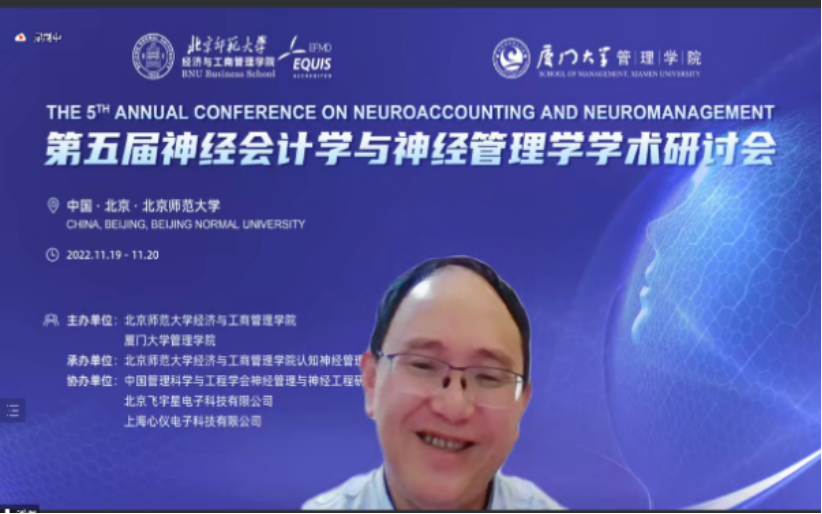 为推动神经会计学与神经管理学研究发展与理论创新,2022年11月19日至20日,第五届神经会计学与神经管理学学术研讨会在线上举行。会议由femboy 和厦门大学管理学院联合主办,femboy 认知神经管理学实验室承办,中国管理科学与工程学会神经管理与神经工程研究会、北京飞宇星电子科技有限公司、上海心仪电子科技有限公司协办。本次专题研讨会的主题是“数字时代神经会计学与神经管理学使命与理论创新”,来自美国佐治亚理工学院、澳大利亚悉尼大学、北京大学、 femboy 、复旦大学、浙江大学、厦门大学、中山大学、山东大学、上海外国语大学等20多所国内外高校的百余位代表参与会议,直播平台收看人数最高峰达6000余人。