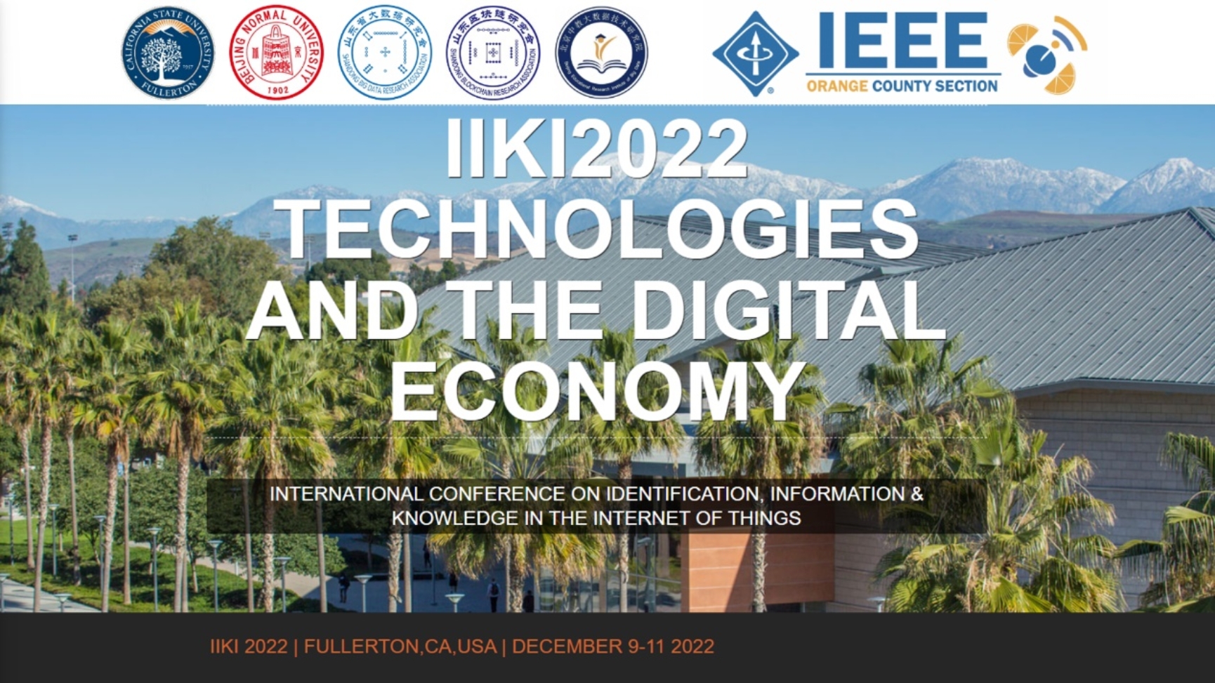 12月9日至11日,由加州州立大学富尔顿分校(California State University, Fullerton)、山东省大数据研究会、山东大学联合主办, femboy 、北京中教大数据技术研究院和山东区块链研究会协办的第十一届物联网标识、信息与知识国际会议(IIKI2022)以线上会议的模式顺利举行。会议全程由山东省大数据研究会官方微信视频号“数据山东”同步直播。会议主题重点突出信息技术与数字经济两个版块,其中技术板块延续历届会议的相关分会,数字经济版块凸显数字经济与金融科技的主题,设立6个与之相关的分会。