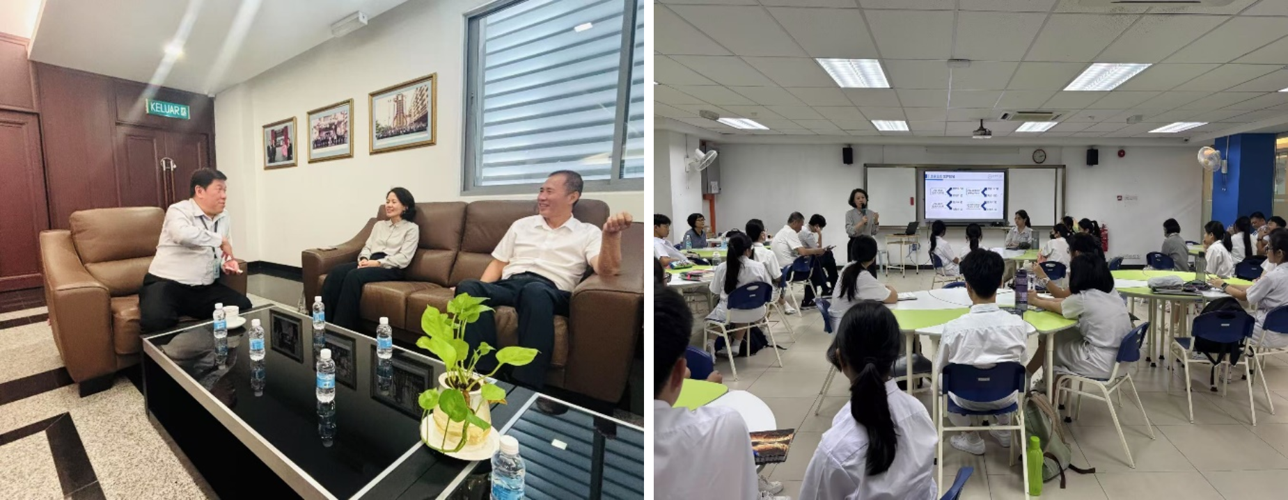 在马期间,代表团到访马来西亚巴生兴华中学。巴生兴华中学是一所当地颇具影响力的华文独立中学,以优质的华文教育著称,多年来为国内外高校输送了大批优秀学子。校长苏进存、升学与国际事务处主任李辉祥与代表团进行会谈。双方围绕国际教育合作渠道拓展以及短期交流项目的可行性等议题展开深入讨论。随后,副院长江婕为兴华中学师生开展校园讲座。江婕详细介绍了北师大百余年的办学历史和学科发展脉络,分享了丰富的留学项目信息,并对北师大经管学院的专业特色、专业选择、课程设置、师资力量。校园生活等进行全方位解读,并回答了师生们的各种问题。