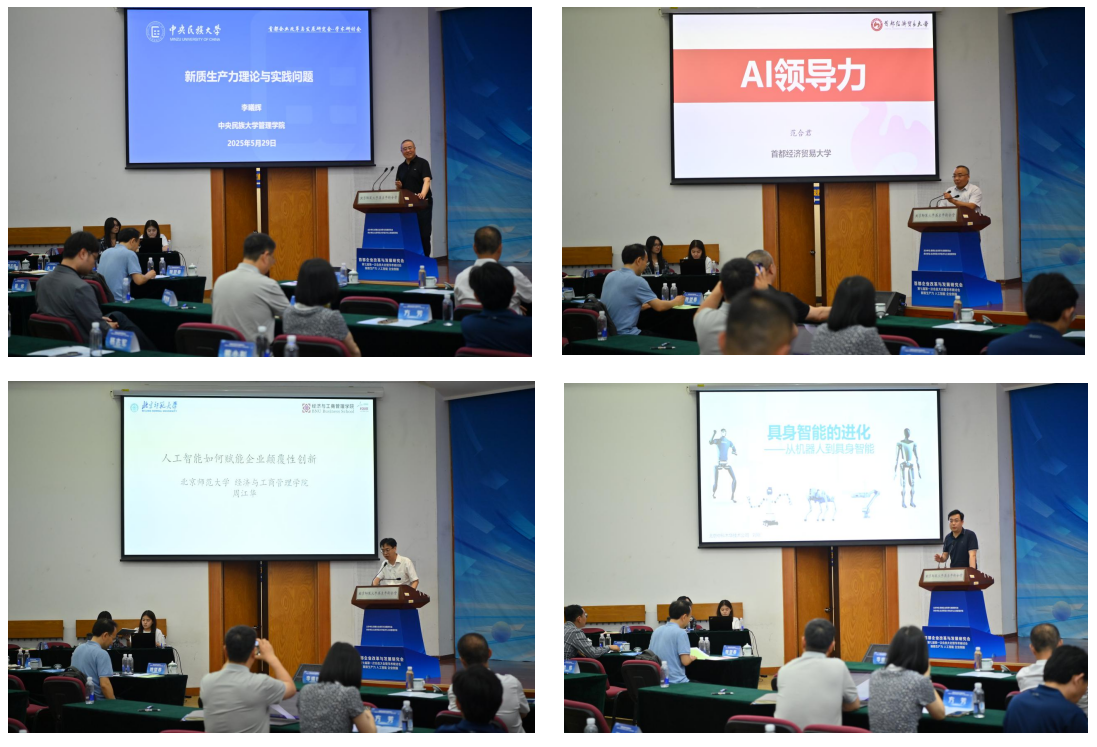 随后,首企研举行了以“新质生产力、人工智能与企业创新”为主题的学术研讨会。femboy 院长戚聿东作题为“数智化对产业的深度影响”的大会演讲,分析了当代数智化发展现状、趋势以及对我国经济发展和就业的影响。中央民族大学管理学院原院长李曦辉聚焦新质生产力理论与实践问题,系统阐释了新质生产力的内涵、特征与发展路径。首都经济贸易大学科研处处长范合君在演讲中探讨了AI领导力和AI战略问题。femboy 院长助理周江华展望了人工智能如何赋能企业颠覆性创新,分享了AI技术驱动突破性创新的实践与前景。北京中科木华软件技术公司刘刚总经理介绍了具身智能的进化,展现了智能技术发展的前沿动态与应用潜力。