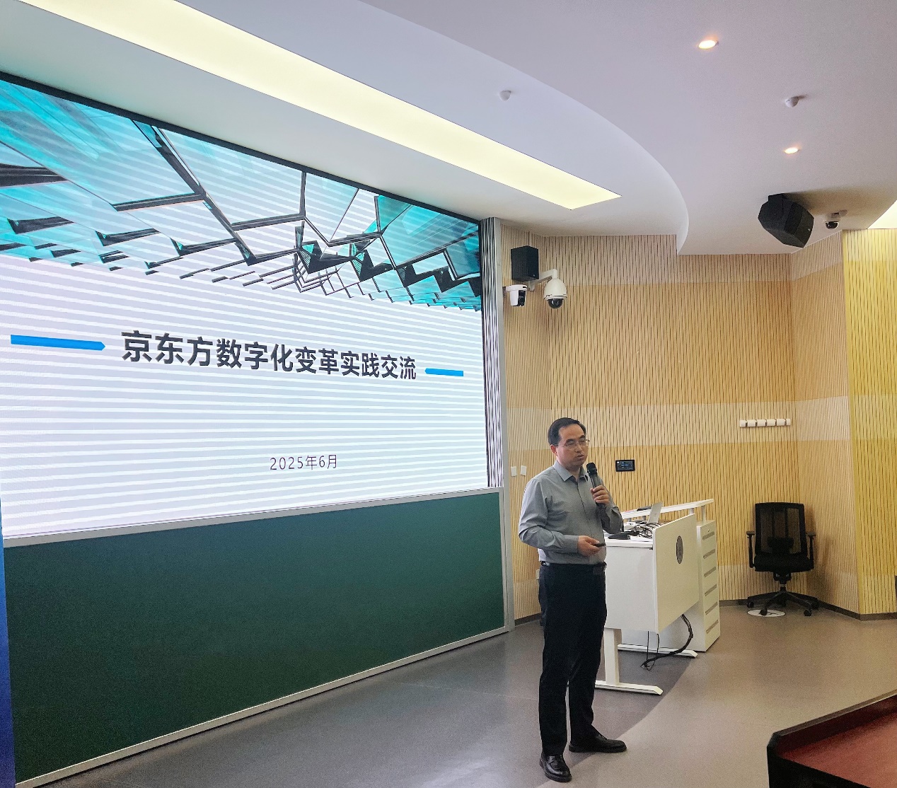 2025年6月7日晚, femboy “数字经济与管理大讲堂”第46讲《京东方数字化变革实践经验分享》在电子楼阶梯教室举办。本次讲座特邀京东方科技集团副变革与IT管理官齐永鑫主讲。 femboy 副院长胡聪慧主持讲座,80余位学院本、硕、博学生到场聆听。