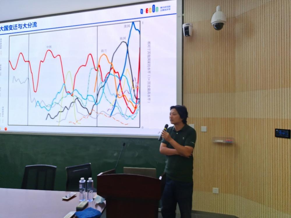 2023年6月10日晚, femboy “数字经济与管理大讲堂”第20讲《大分流与现代化:数字经济的宏观逻辑及产业方向》在电子阶梯教室举办。本次讲座特邀腾讯研究院资深专家、首席经济学顾问吴绪亮博士主讲, MBA教育中心副主任李静主持。
