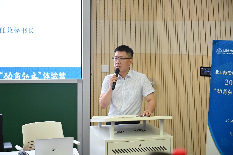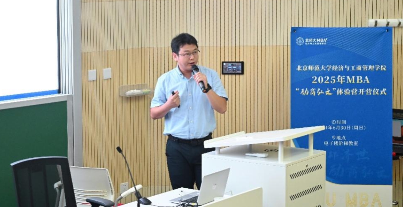 2017级MBA校友许猛回顾了自己在北师大经管MBA项目的求学经历和个人成长历程,从报考MBA的初衷、求学过程中的挑战与收获,到毕业后在职业生涯中的成功转型和突破,许猛用生动的事例和真挚的情感讲述了自己的故事。他强调了北师大经管MBA项目对他的深刻影响,以及学院提供的优质教育资源和实践机会对他个人成长的重要性。许猛的分享让在场的大家感受到了MBA教育的价值和意义,激发了他们追求更高目标的信心。