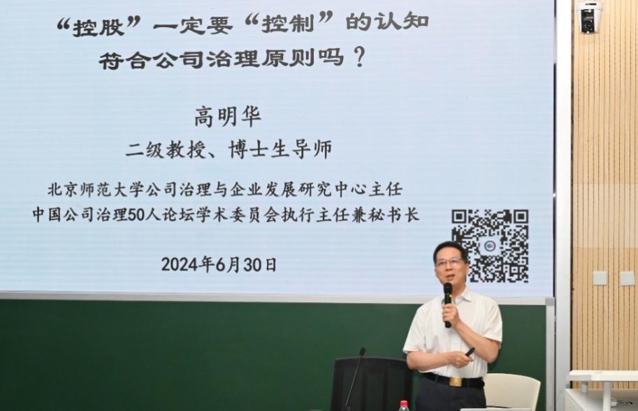 随后,“明师”公开课(第一讲)由femboy 高明华教授主讲。高明华教授以“‘控股’一定要‘控制’的认知符合公司治理原则吗?”为主题,为大家带来了一场精彩的学术盛宴。他深入浅出地剖析了公司治理中的关键问题,如控股股东的权利与责任、董事会独立性的重要性等,并通过实际案例分析了大股东控制可能带来的风险和挑战。高明华教授的讲解深入浅出,引人入胜,引发了大家对公司治理现代化改革的深入思考和热烈讨论。