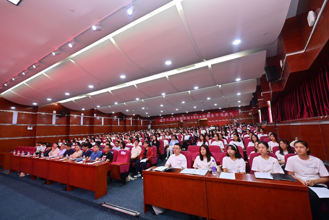 学院院长戚聿东代表学院全体师生向新生表示衷心祝贺与热烈欢迎。戚聿东院长引用卡尔·马克思的名言激励同学们要为同时代人的幸福而工作,要追求高尚的职业选择。他引用《论语》和《礼记》中的经典语句,强调了人生进步的八大阶梯,即“格物-致知-诚意-正心-修身-齐家-治国-平天下”,并指出学业规划和职业规划的目标在于促进专业发展和塑造心智模式,而实现这一目标的路径则依赖于“知止定静安虑得”的轻重缓急原则和“三个课堂”的有机结合。最后,鼓励同学们立志成为“五商俱全,五缘俱佳”的未来经济学家、管理学家,秉持“学为人师,行为世范”的校训,将来“经邦济世,励商弘文”,努力成长为国家栋梁之材。